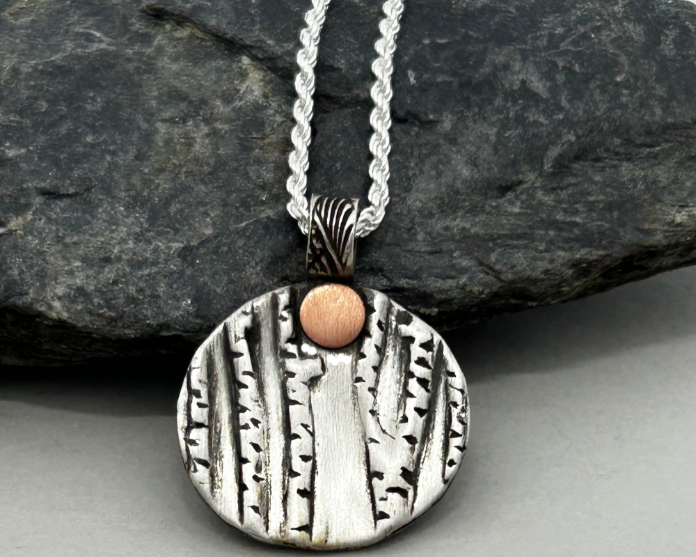 I created this White Birch Tree Pendant Necklace with Sterling Silver Metal Clay. Unique and handmade by me. Perfect for someone who loves nature and the mountains. Great hiker gift.