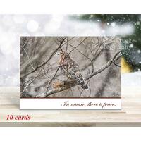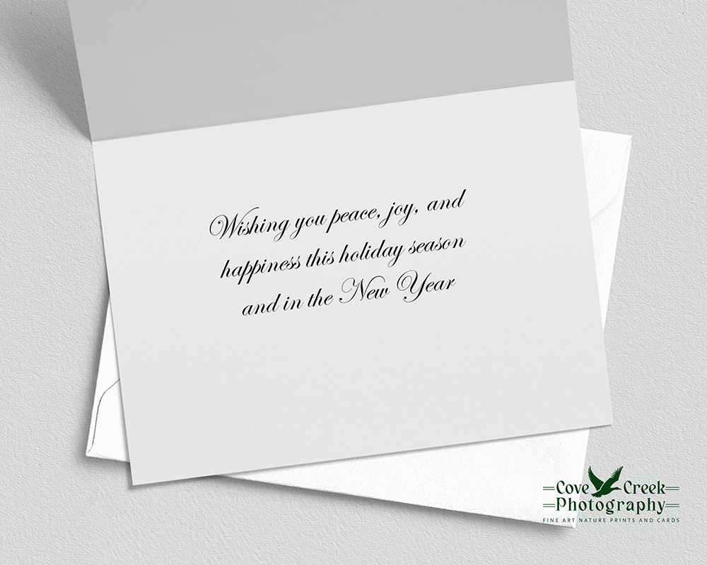 A gadwall (duck) in flight is ready to proclaim "Season's Greetings" to everyone on your Christmas card list! This is a new design for 2025, and I think it will appeal to anyone who appreciates the beauty that nature has to offer. The interior verse is "Wishing you peace, joy, and happiness this holiday season and in the New Year"