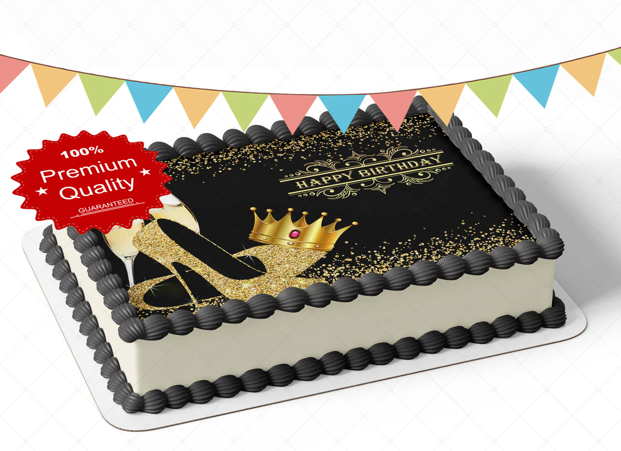 Black And Gold Champagne Glitter Shoes BGS Edible Image Themed Edible Birthday Party Cake Topper Sheet Edible Sticker Decal