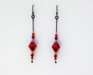 crystal bead with black crystal accent beads and sterling silver spacers.