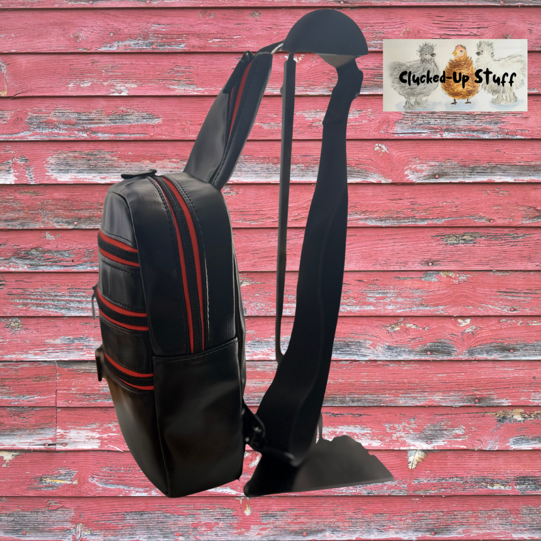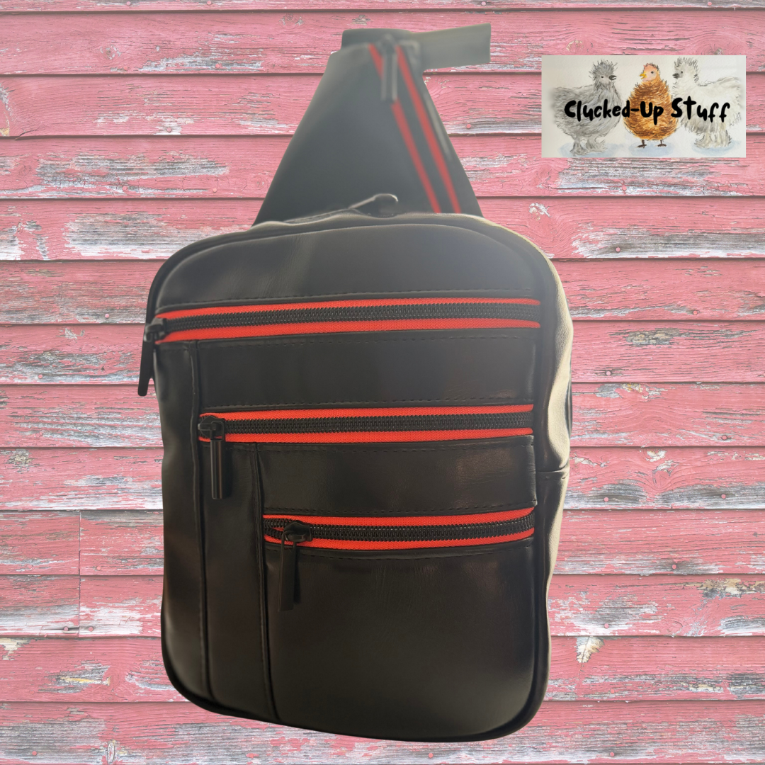Sleek, bold, and built for everyday carry, this unisex sling bag is crafted from buttery smooth black faux leather with striking orange zippers and matte black hardware for a clean, modern look. Compact but thoughtfully designed, it’s ideal for errands, travel, or daily essentials without feeling bulky.