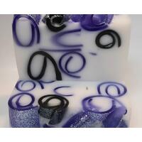 Sodium Cocoate, Propylene Glycol , Sodium Stearate, Glycerin, Water, Sorbitol, Butyrospermum Parkii (Shea) Seed Butter, Titanium Dioxide, olive oil, fragrance oil, red 33, violet 2, black oxide