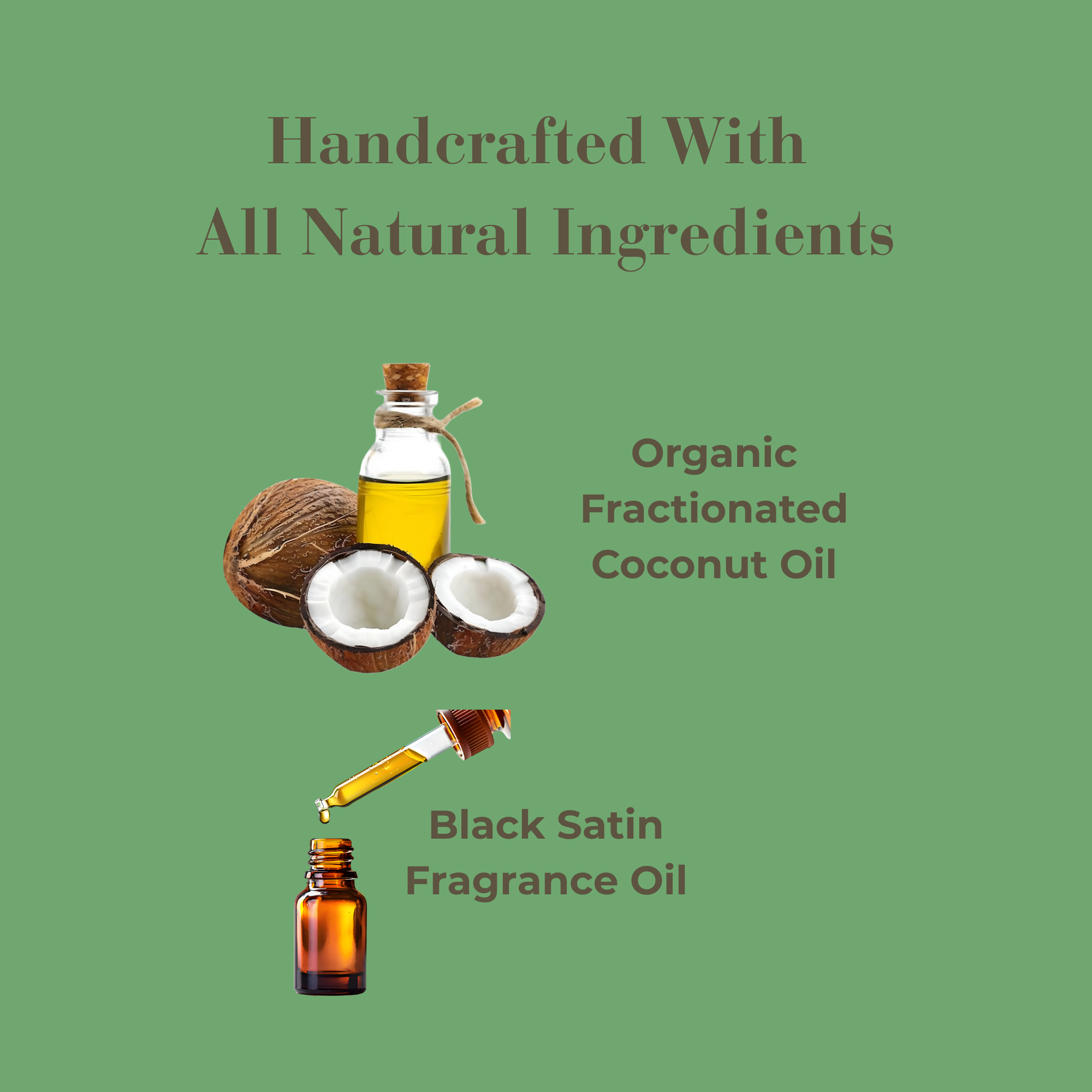 Ingredients are: Organic Fractionated Coconut Oil, Pure Essential Oils