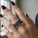 Make a striking statement with this handcrafted black beaded ring designed for those who love bold, distinctive style. The wide, chunky band is created from glossy black glass beads woven in a textured pattern that catches the light beautifully. Its substantial size gives it a modern, edgy look, while the beadwork adds a touch of artisanal charm. Whether worn as a standalone piece or paired with other rings, this design is versatile enough for both casual outfits and evening wear.