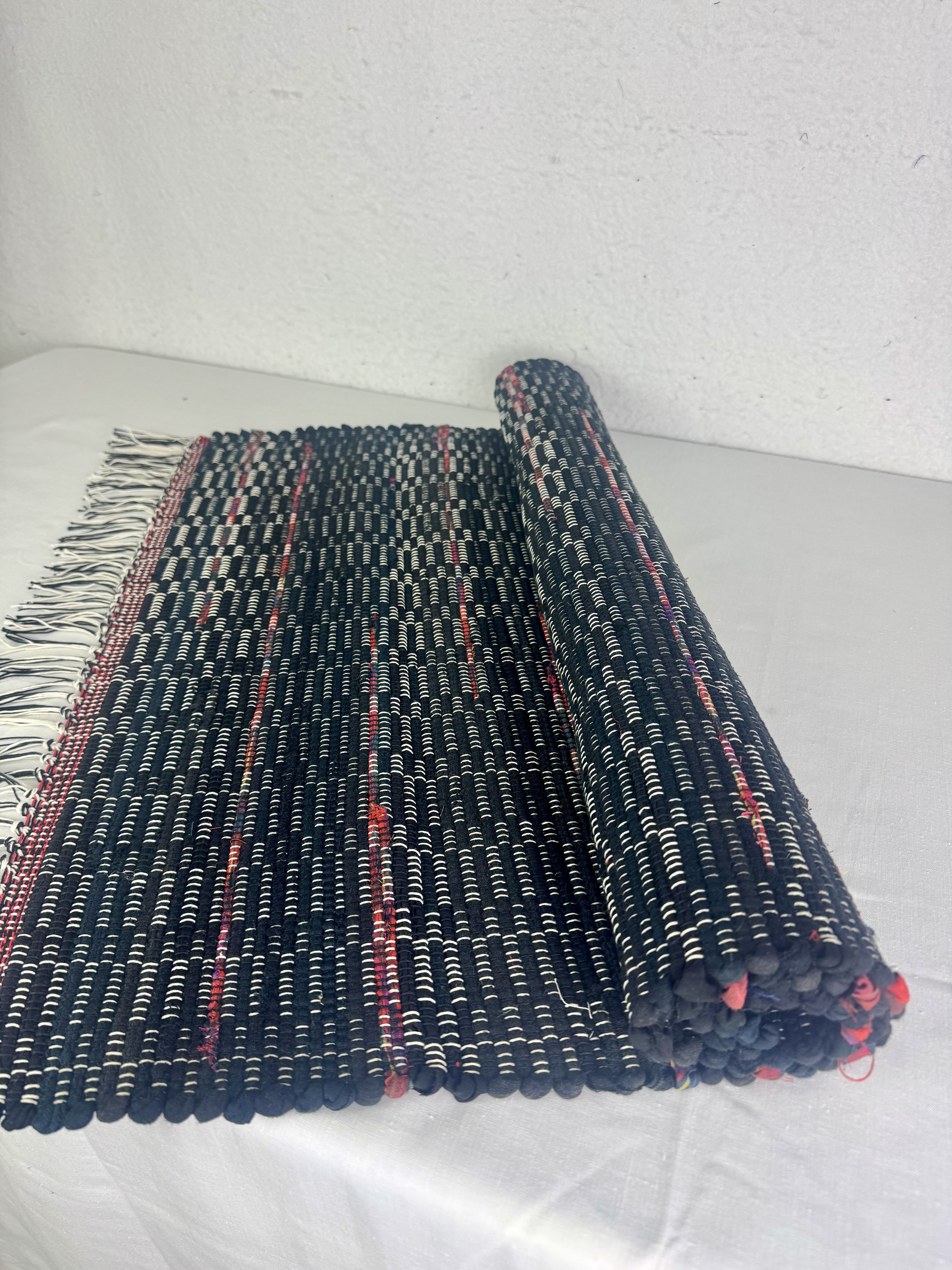 Every rug is meticulously handwoven on my trusty two-harness loom. I pour my passion and attention to detail into each weave, ensuring a quality that transcends trends. The impeccable straight edges and tightly woven strands are testaments to my dedication, while the variety of warp colors allows me to create pieces that complement any aesthetic, from modern minimalism to vintage charm.