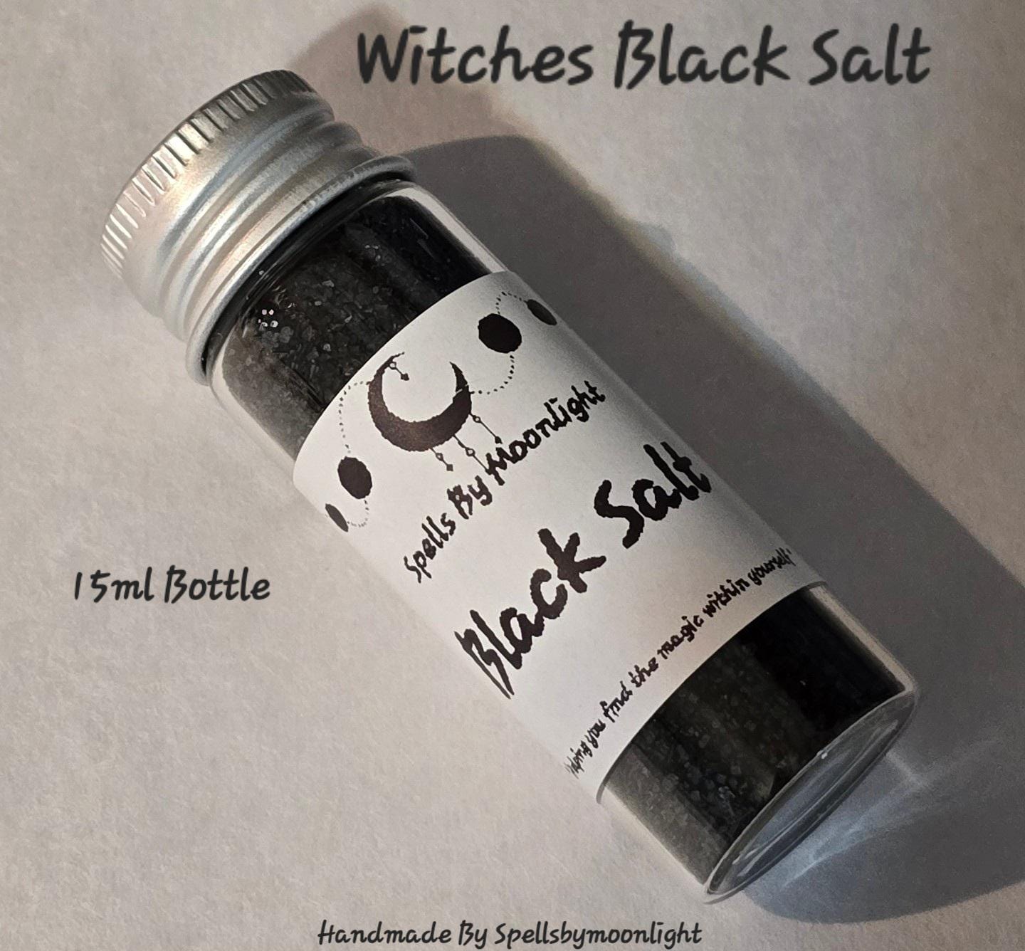 I make my witch salts in small batches. This Black Salt is to help you in warding off evil and negative energies. Used for banashing, breaking hexs and curses.Anything protection related. Use in spells, rituals, spell jars & to dress candles. You can put some in front of your doors & on windowsills for protection ✨Listing is for one 15ml bottle of Black Witch Salt only. All other items were used for product photography