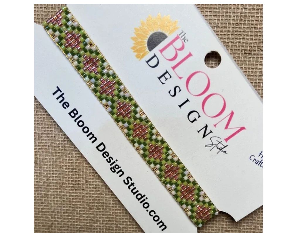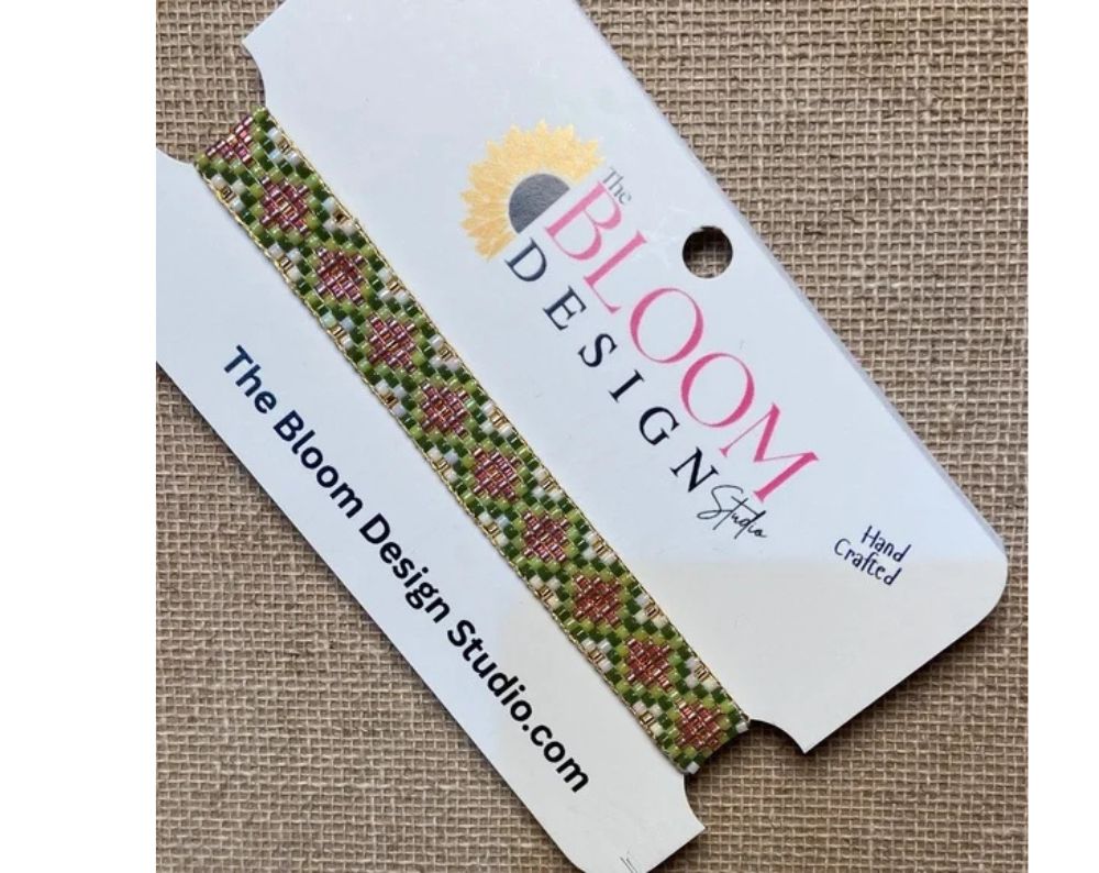 Each of our handcrafted loom-beaded bracelets begins its journey with a detailed design pattern, thoughtfully created to ensure a stunning final product. The process starts by setting up a specialized jewelry loom, which serves as the foundation for weaving. Using high-quality Japanese glass Miyuki Delica seed beads in size 11/0, known for their uniformity and vibrant colors, we meticulously string each bead to follow the intricate pattern.