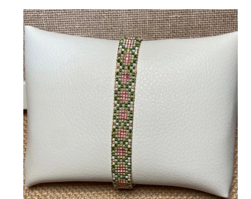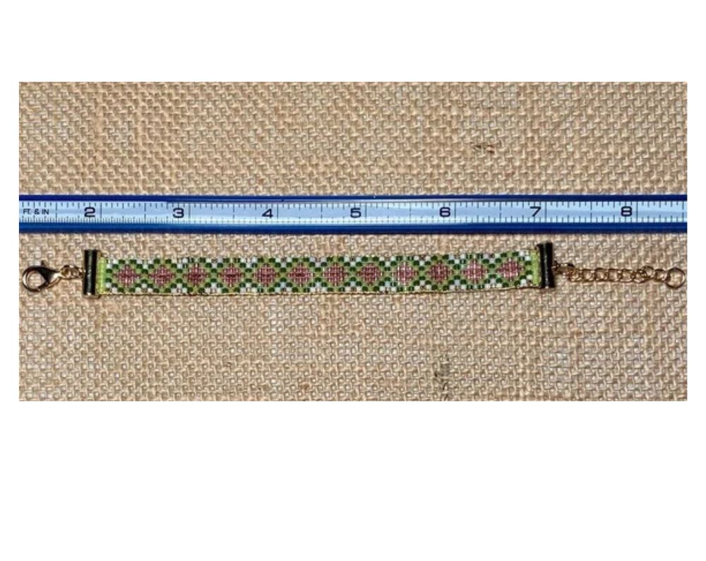 Add a unique touch to your accessory collection with this handcrafted loom-beaded bracelet.