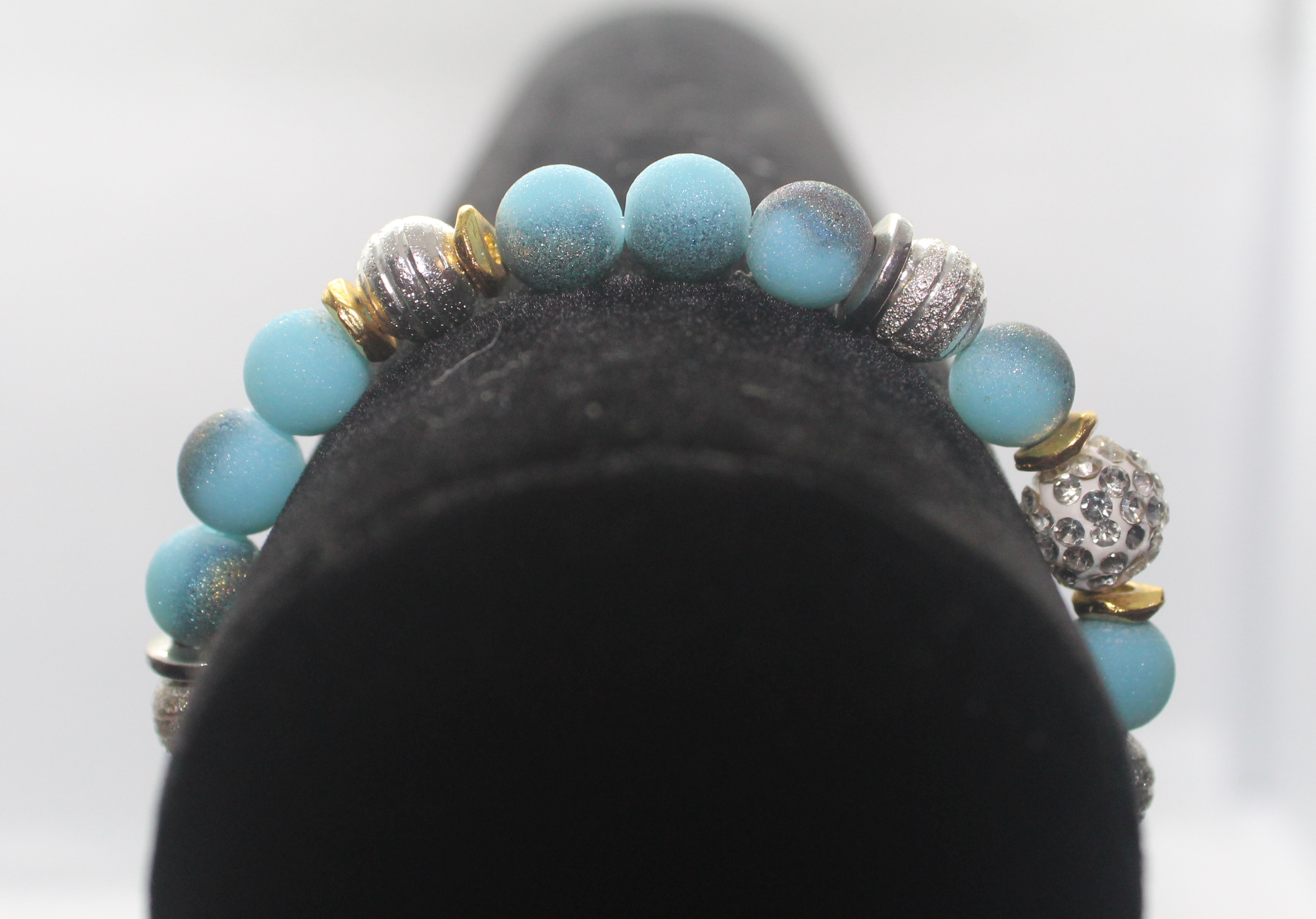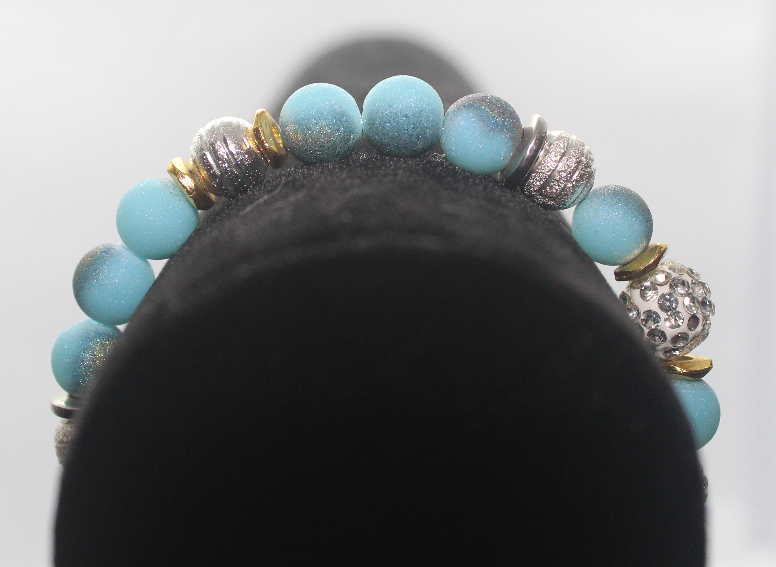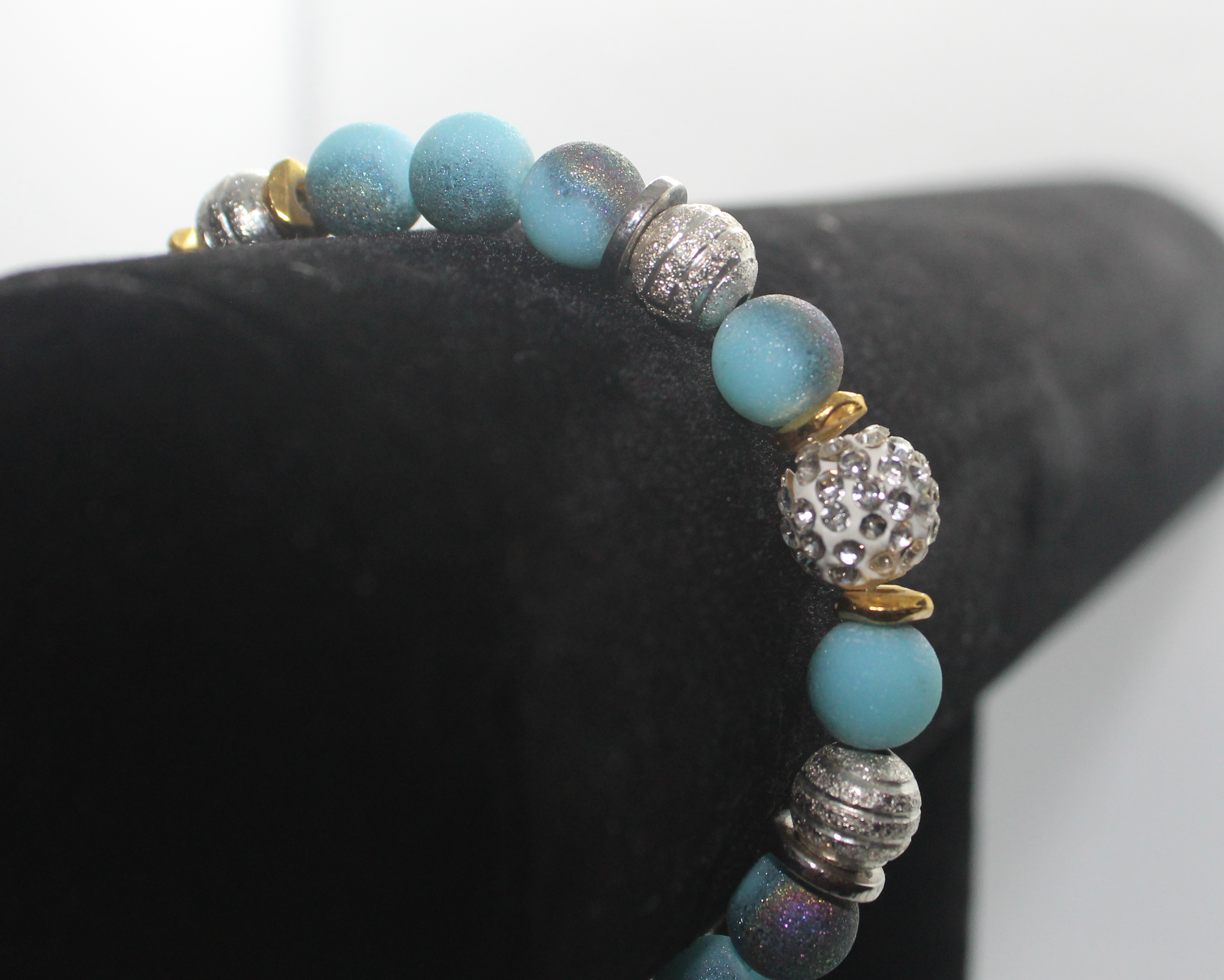 This awesome bracelet is a perfect mix of style and flair! It features beautiful Blue, White, and shiny gold and silver spacers in between. This bracelet isn’t just pretty; it’s also super versatile! You can wear it with anything, whether you’re hanging out with friends or dressing up for a special occasion. Each bead is carefully chosen, making it a standout piece that shows off a unique vibe. It’s definitely a must-have for any jewelry collection!