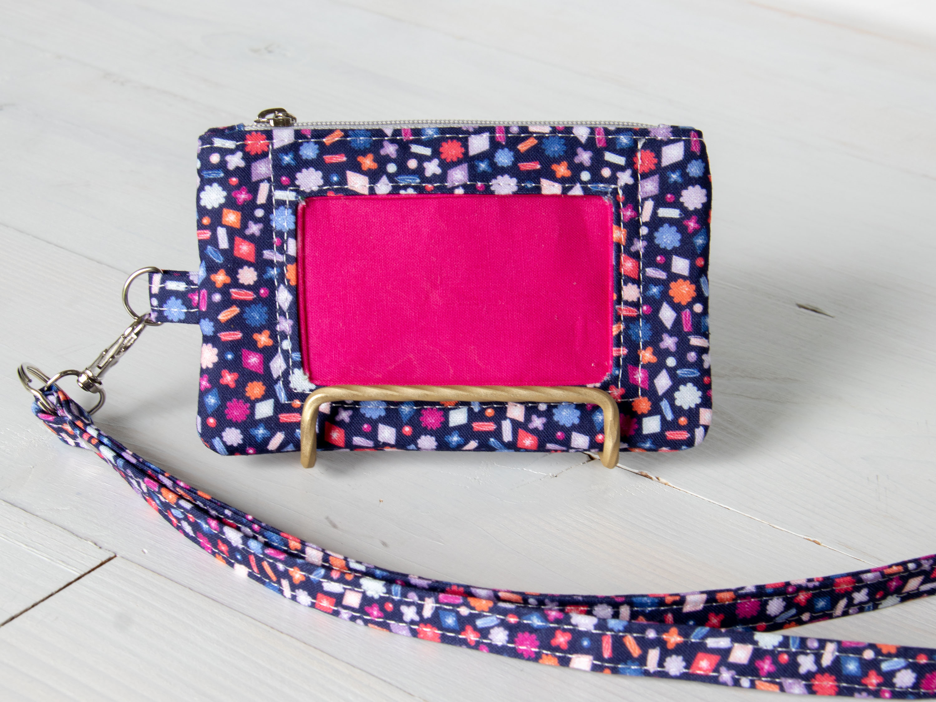 The badge slides in the vinyl window from inside the pouch, so no worries of it falling out. The zipper pouch area will hold your lip balm, additional cards, cash etc.