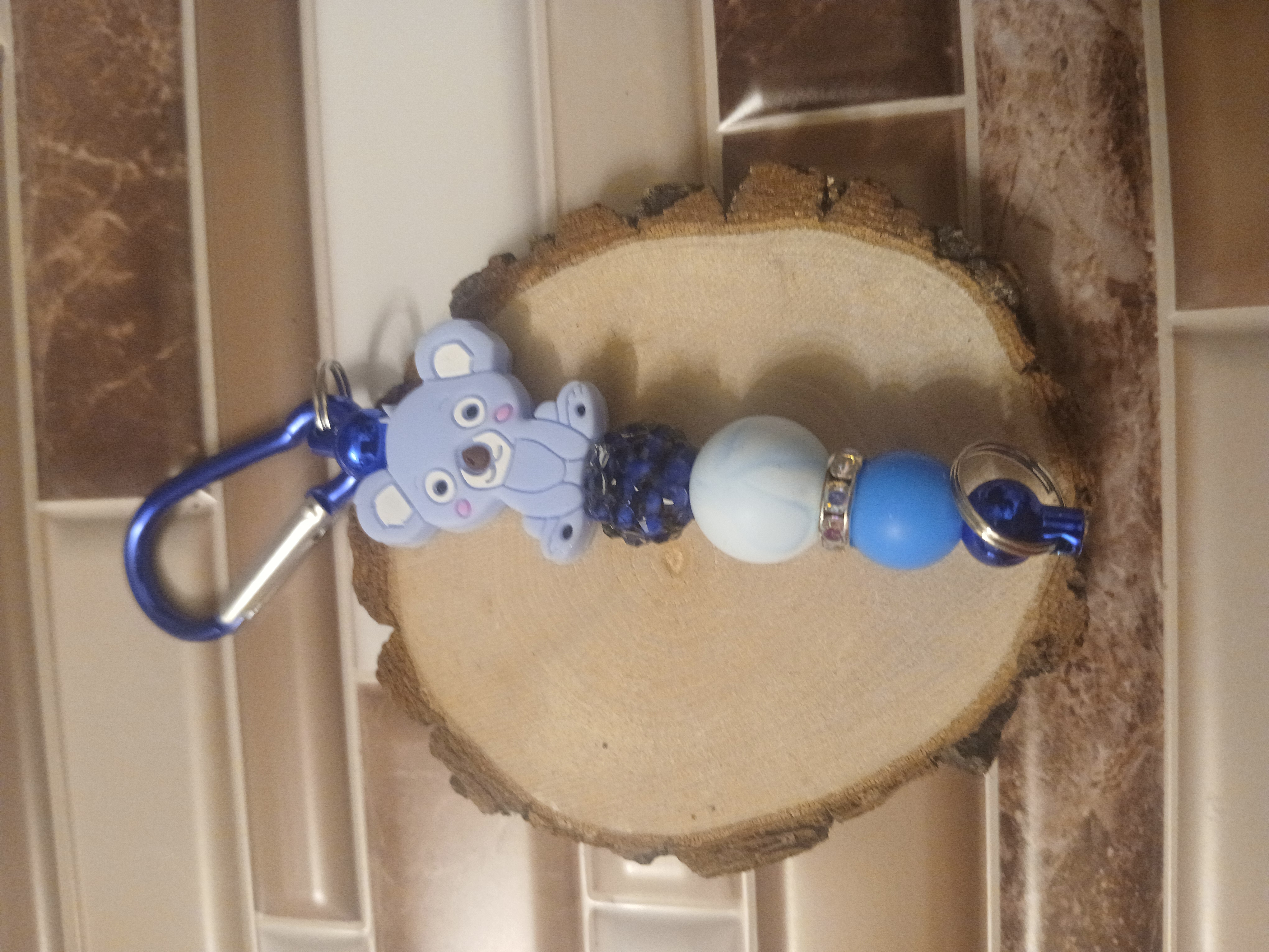 This cute blue koala bear silicone with blue beads on a blue beadable keychain with clip can used as a keychain or a bag or purse decoration