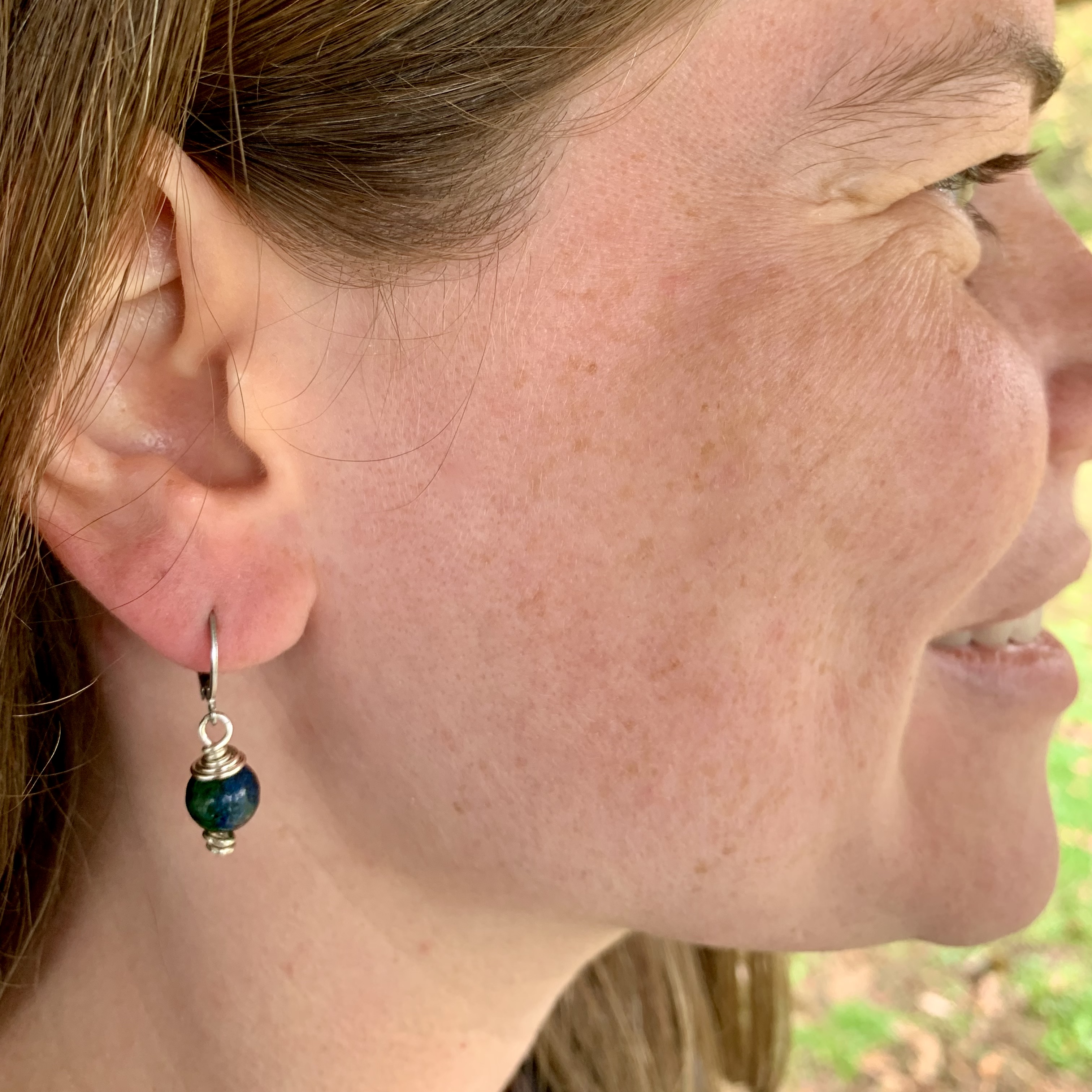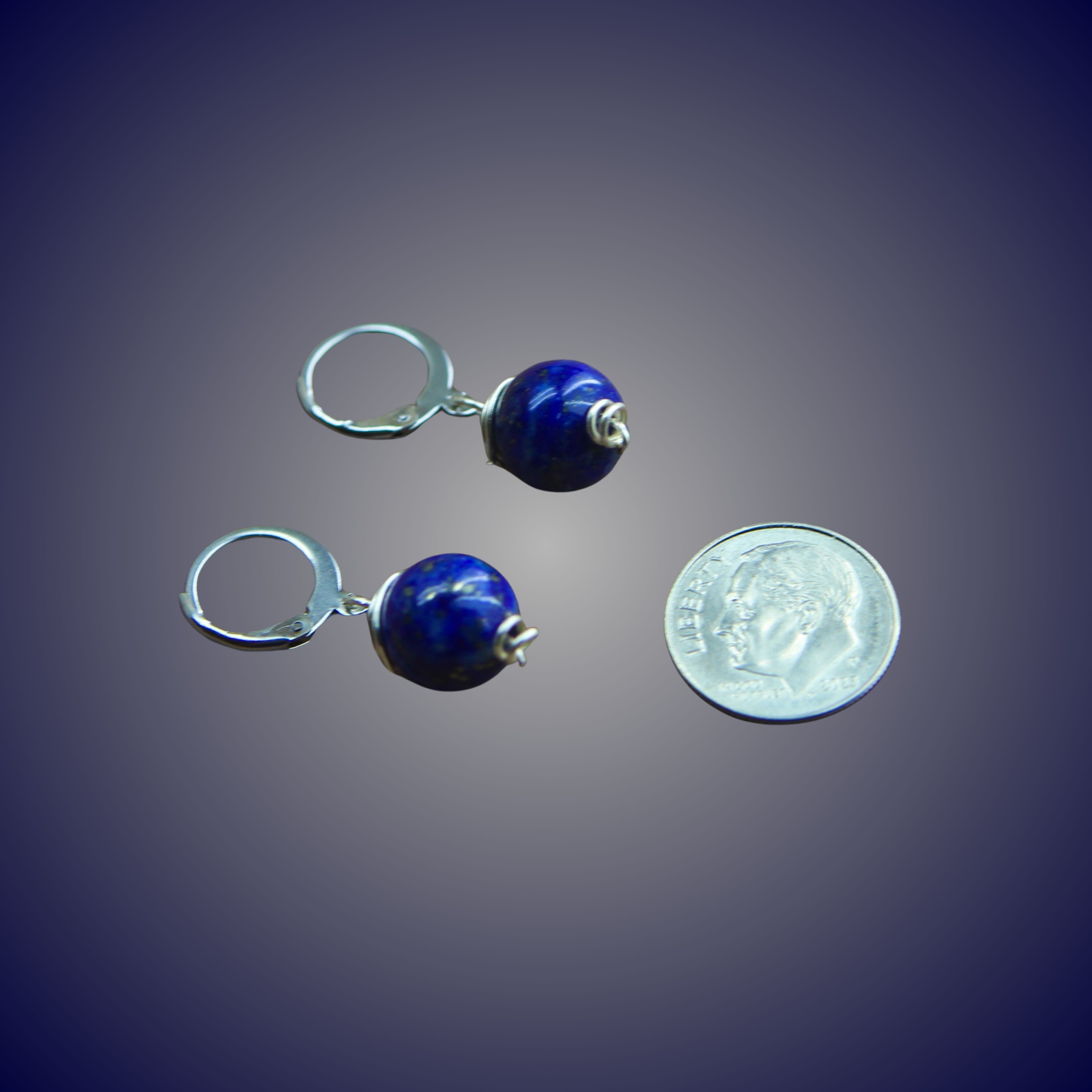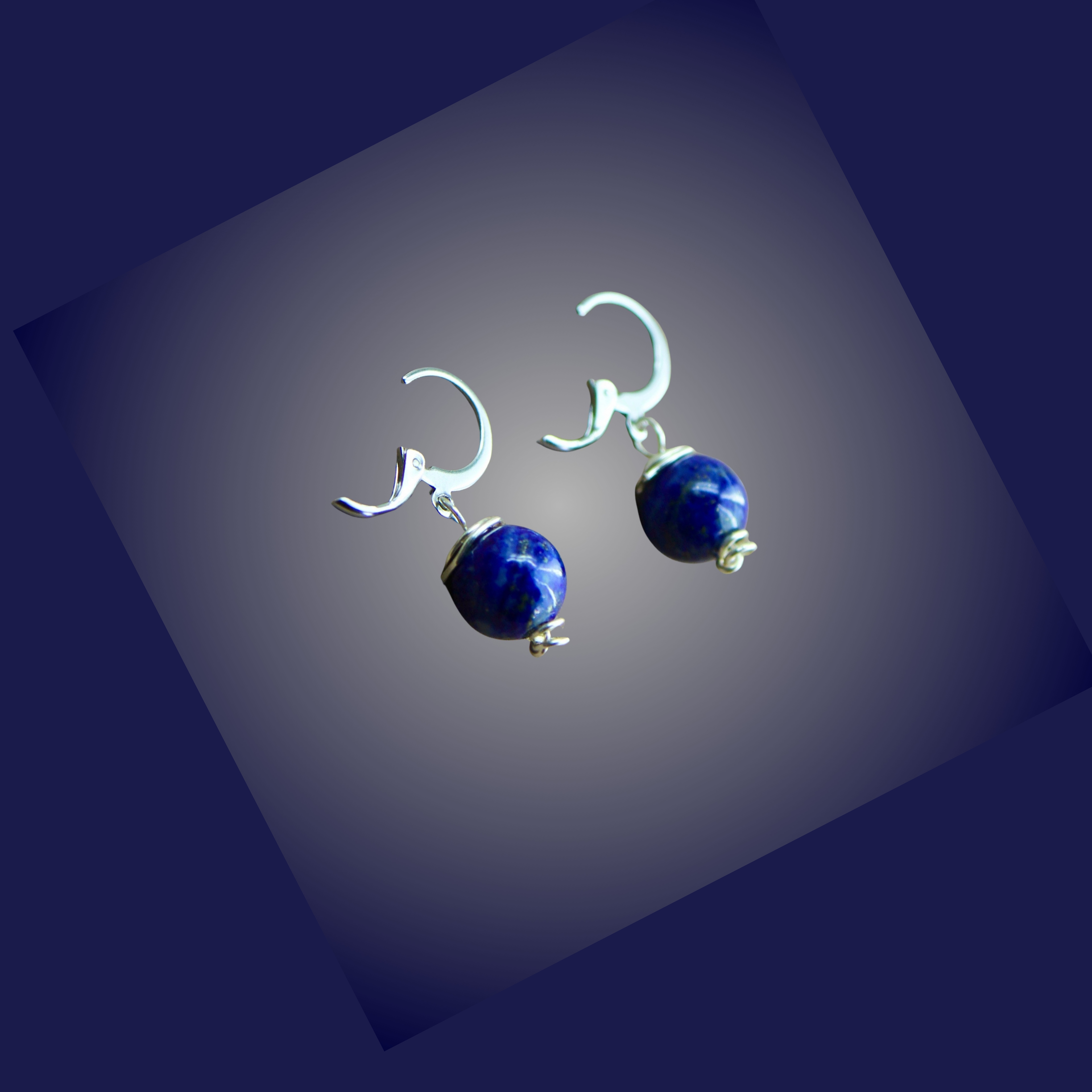 These unique, quality-crafted, GENUINE DEEP BLUE LAPIS LAZULI earrings that have been hand wrapped with silver accent wire. They include 925 sterling silver plated huggie hoops earring closures. The perfect accessory for adding a little color to your day or almost any outfit. Goes great with jeans!?