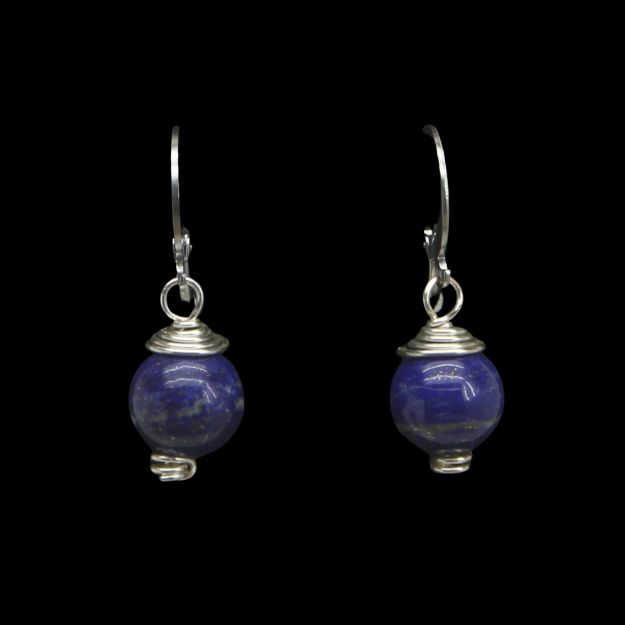 I select a matching pair of Lapis Lazuli gemstones and then carefully wrap my German style silver wire around each stone before finishing the earrings with 925 Sterling Silver plated huggie hoop closures.