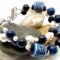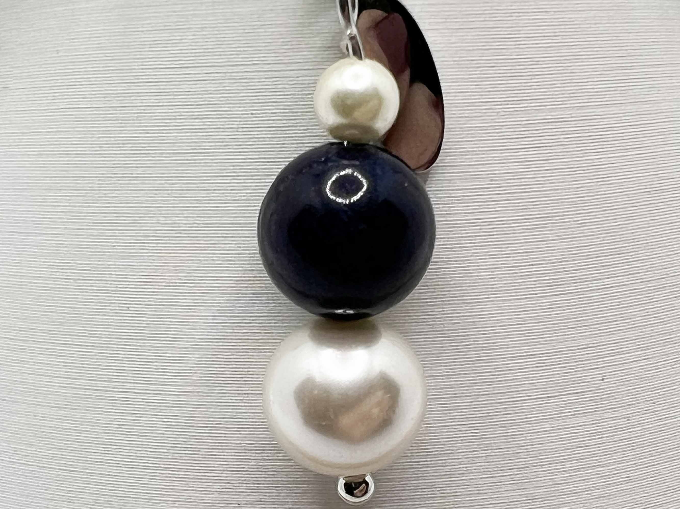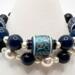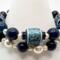 Beads: 12mm patterned clay, 8mm & 10mm blue glass, 4mm & 8mm glass pearls