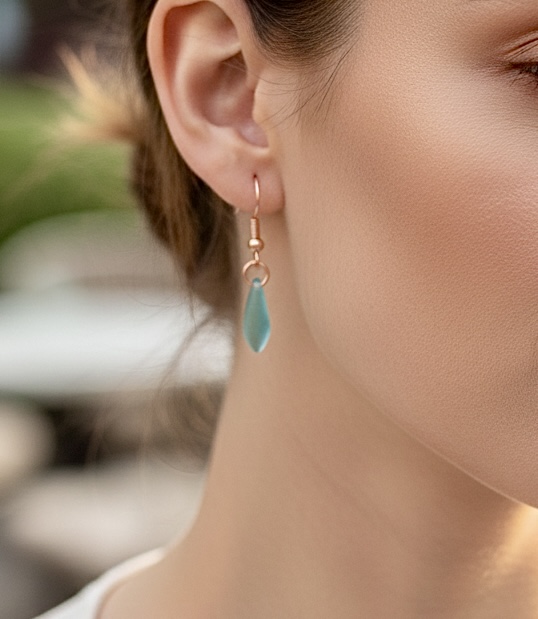 Many people have metal allergies. Hypoallergenic (nickel- and chromium-free) ear wires solve the problem for some, but others have skin reactions to these as well. Our earrings are available with metal AND plastic earring hooks (and bails as needed) — no metals at all are in these hooks. Each earring product has an option for you to select metal or plastic earring hooks. The plastic hooks are very lightweight, quite comfortable, and solve the metal allergies problem.