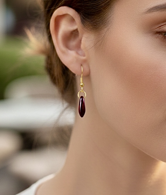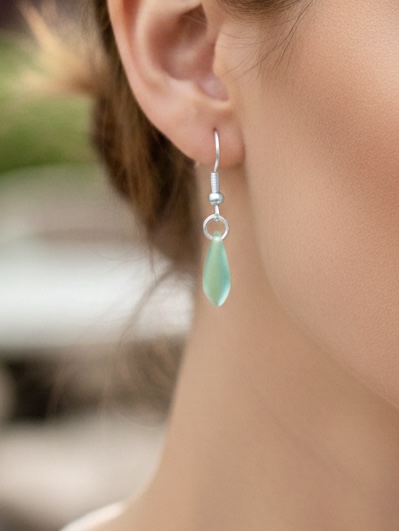 For those who prefer smaller earrings, these slim, attractive pieces are sure to please. Available in blue, green, and red.