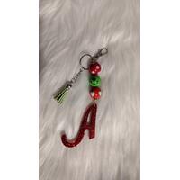 Keychain made with 20mm beads, tassel, owl and letter G charms and clear stretchy string. Super cute to add to a stocking or gift and can be used for decoration on a backpack or purse.