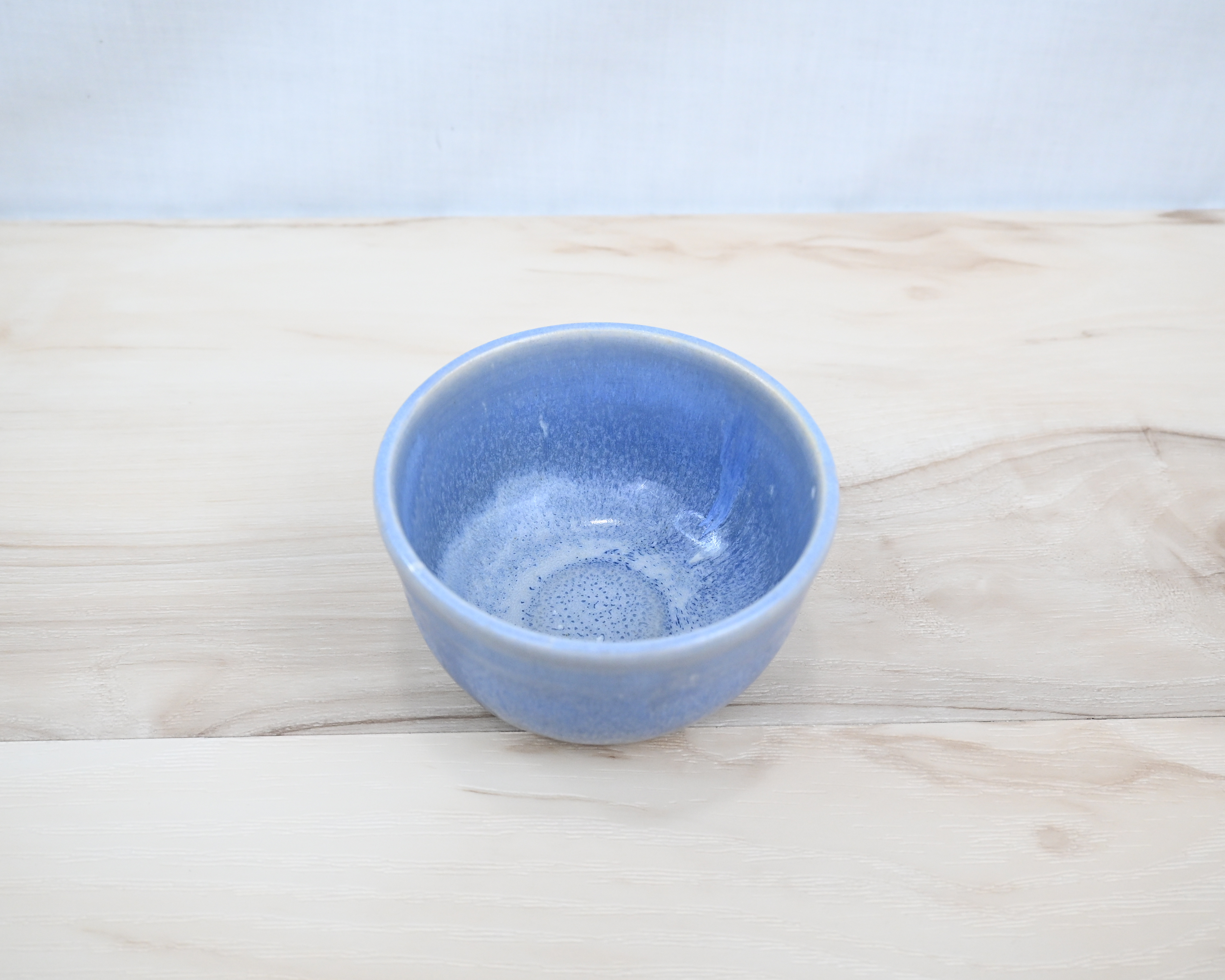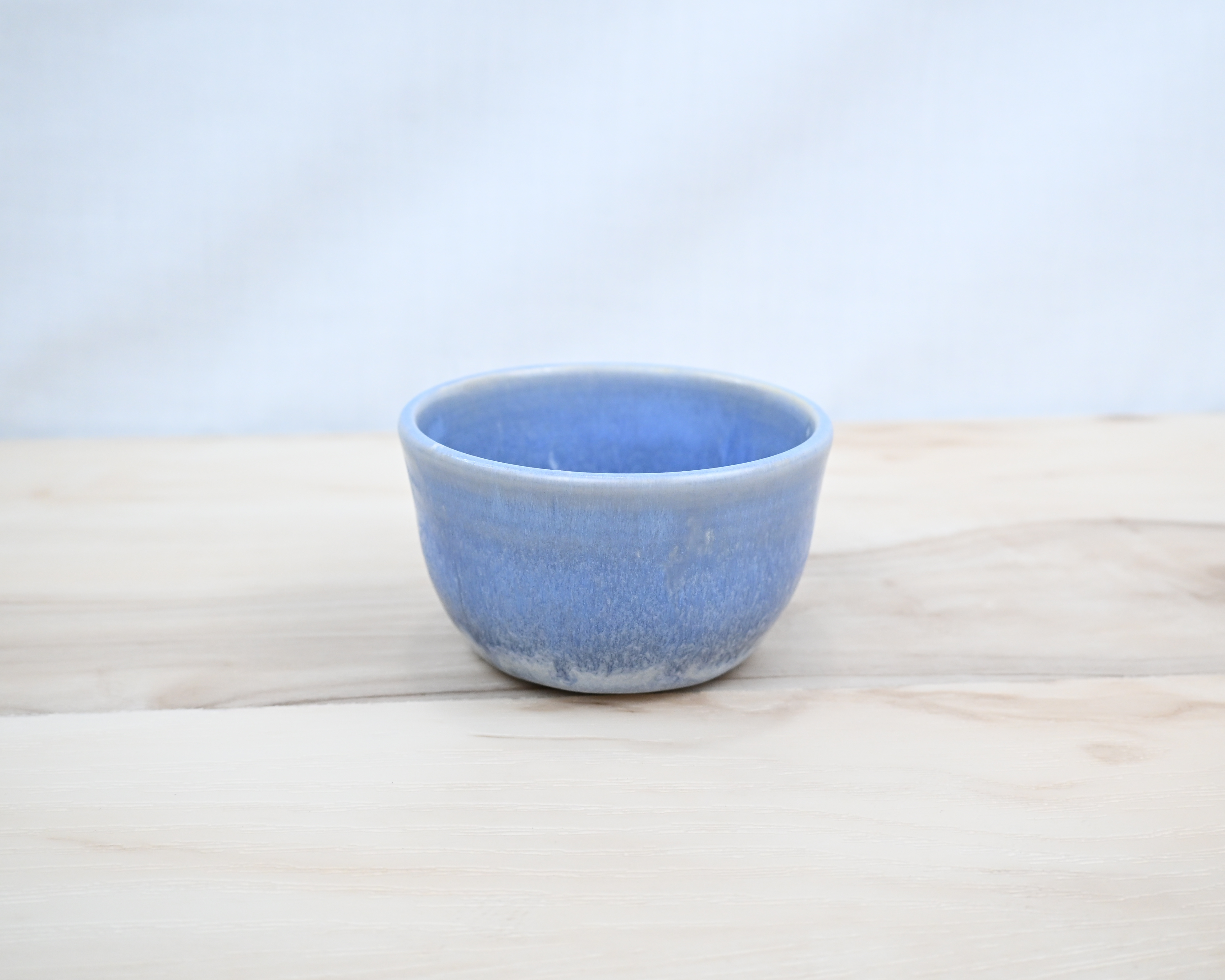A small trinket dish finished in a soft blue glaze with gentle variations in tone. Perfect for holding jewelry, coins, or other little keepsakes.