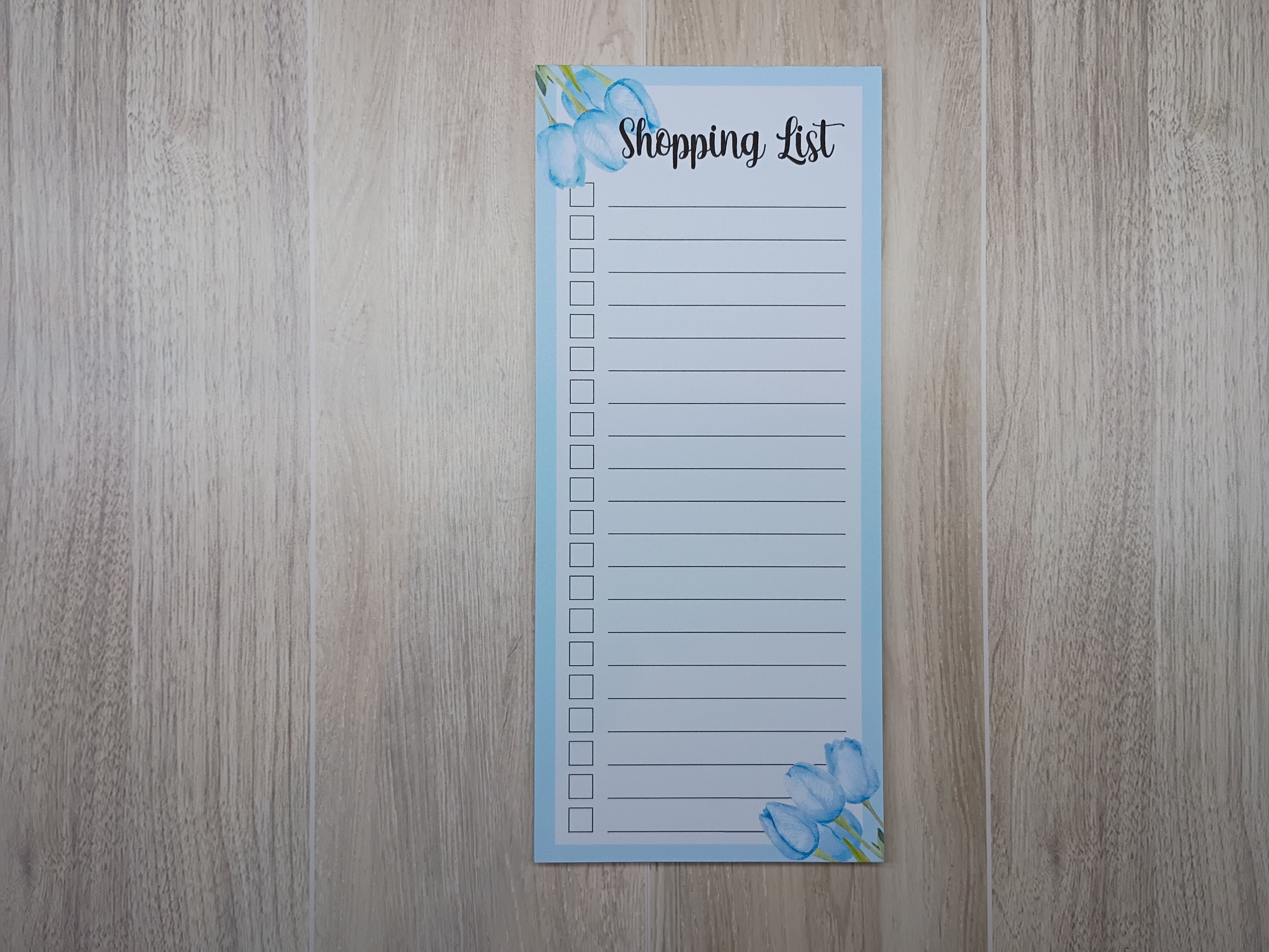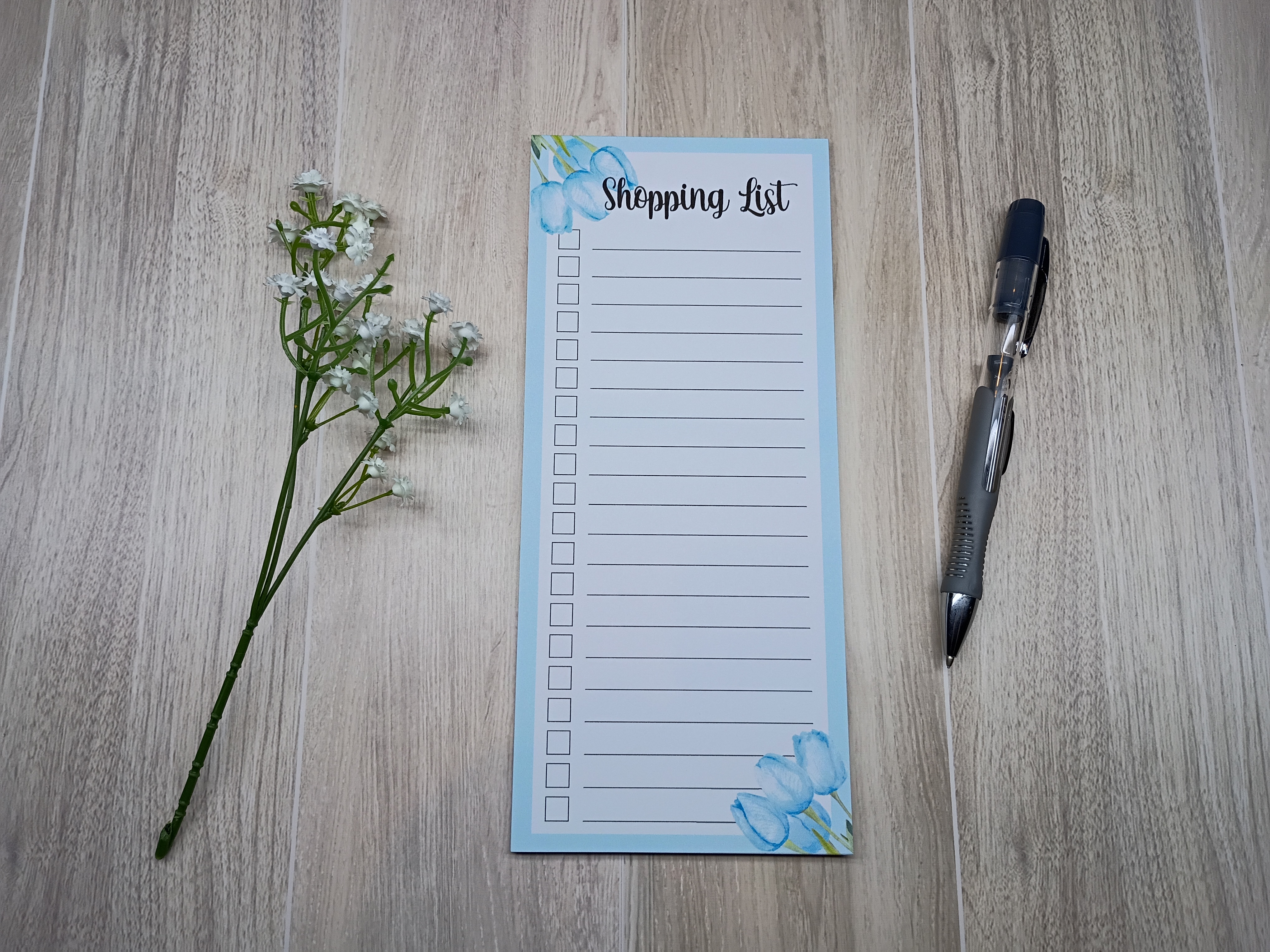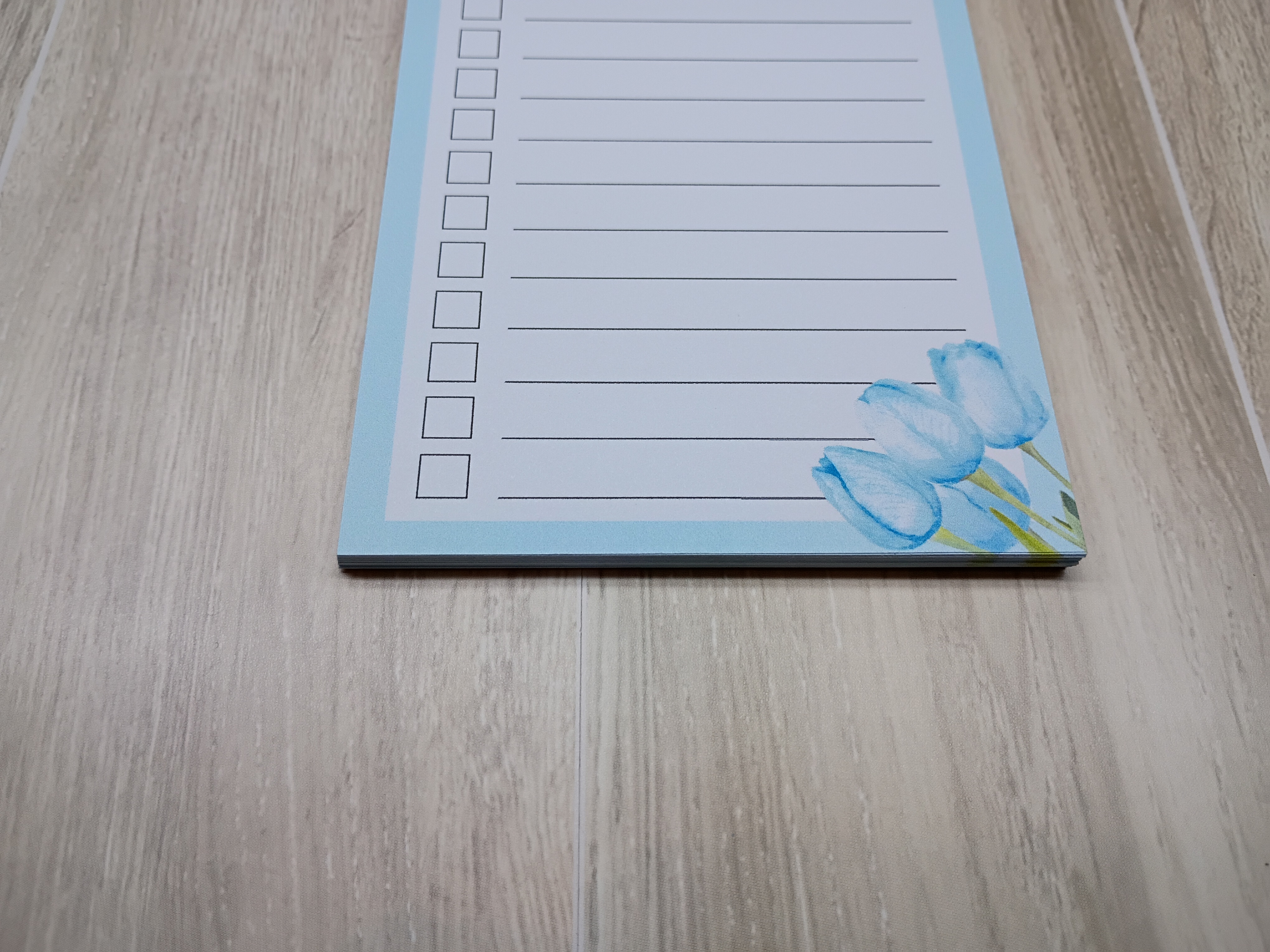Bring a touch of floral charm to your shopping list with this classic tear-away notepad featuring delicate blue tulips and a clean checkbox layout. Designed for simplicity and beauty, it’s perfect for organizing your day with intention.