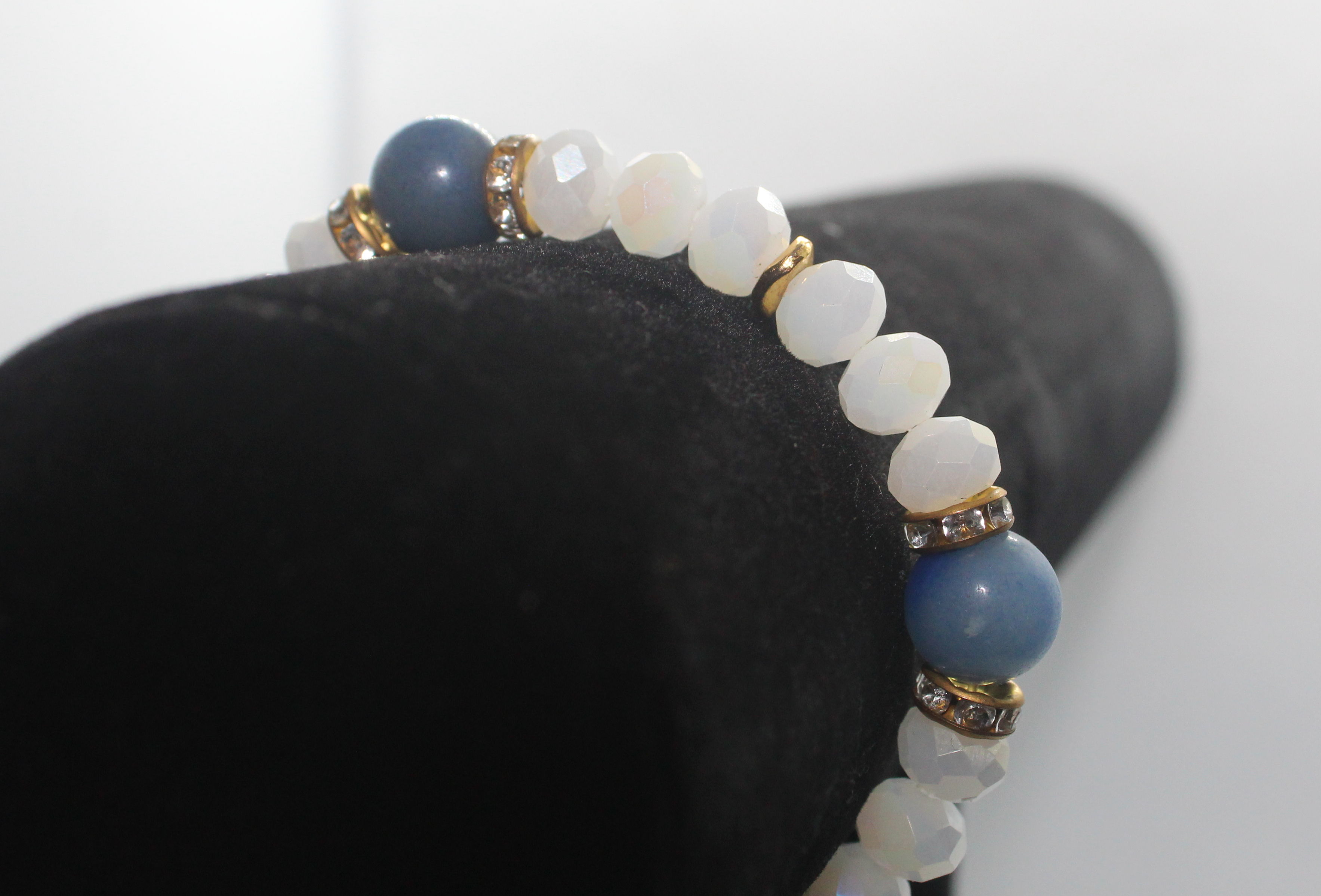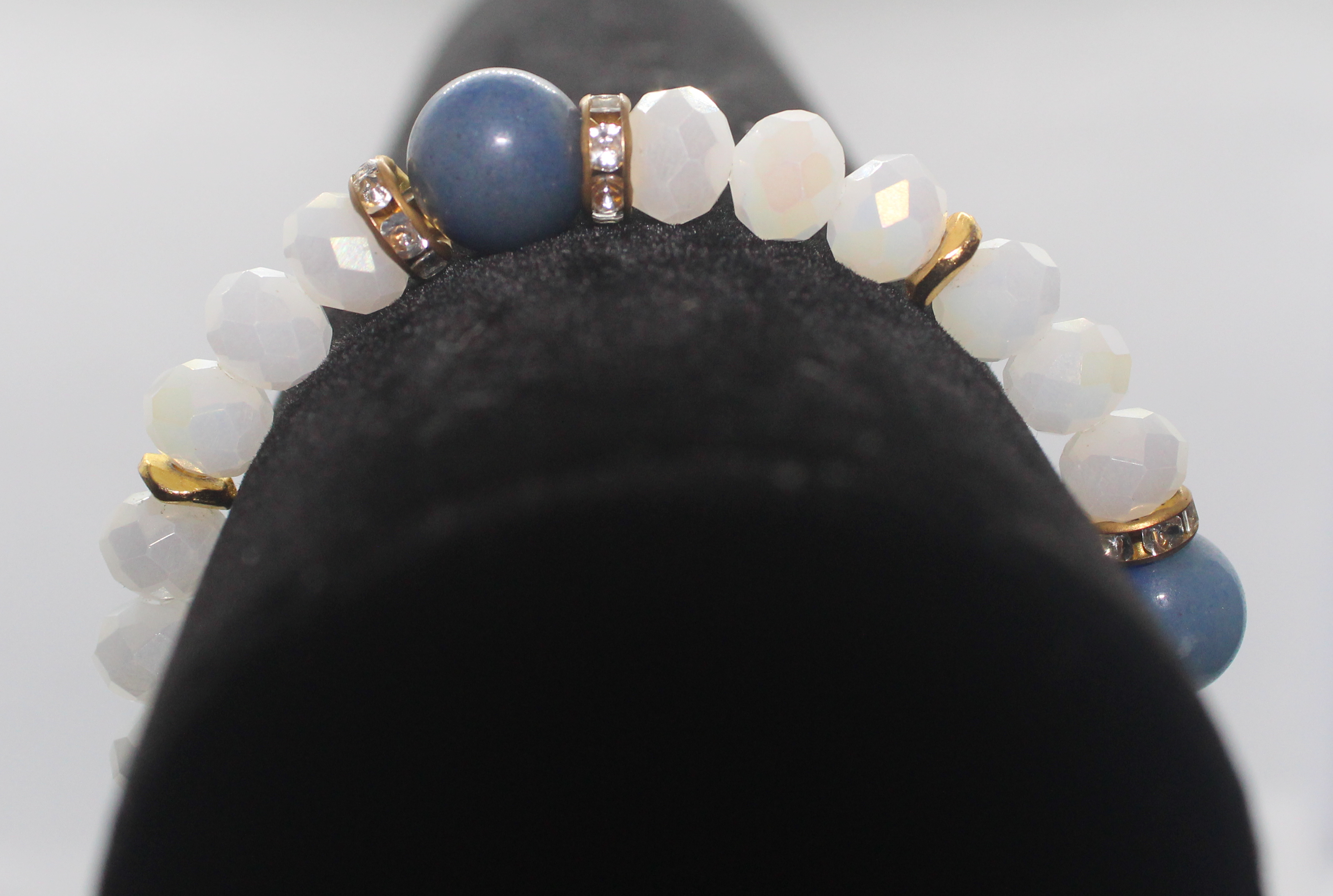 This awesome bracelet is a perfect mix of style and flair! It features beautiful Blue, White, and shiny gold spacers in between. This bracelet isn’t just pretty; it’s also super versatile! You can wear it with anything, whether you’re hanging out with friends or dressing up for a special occasion. Each bead is carefully chosen, making it a standout piece that shows off a unique vibe. It’s definitely a must-have for any jewelry collection!