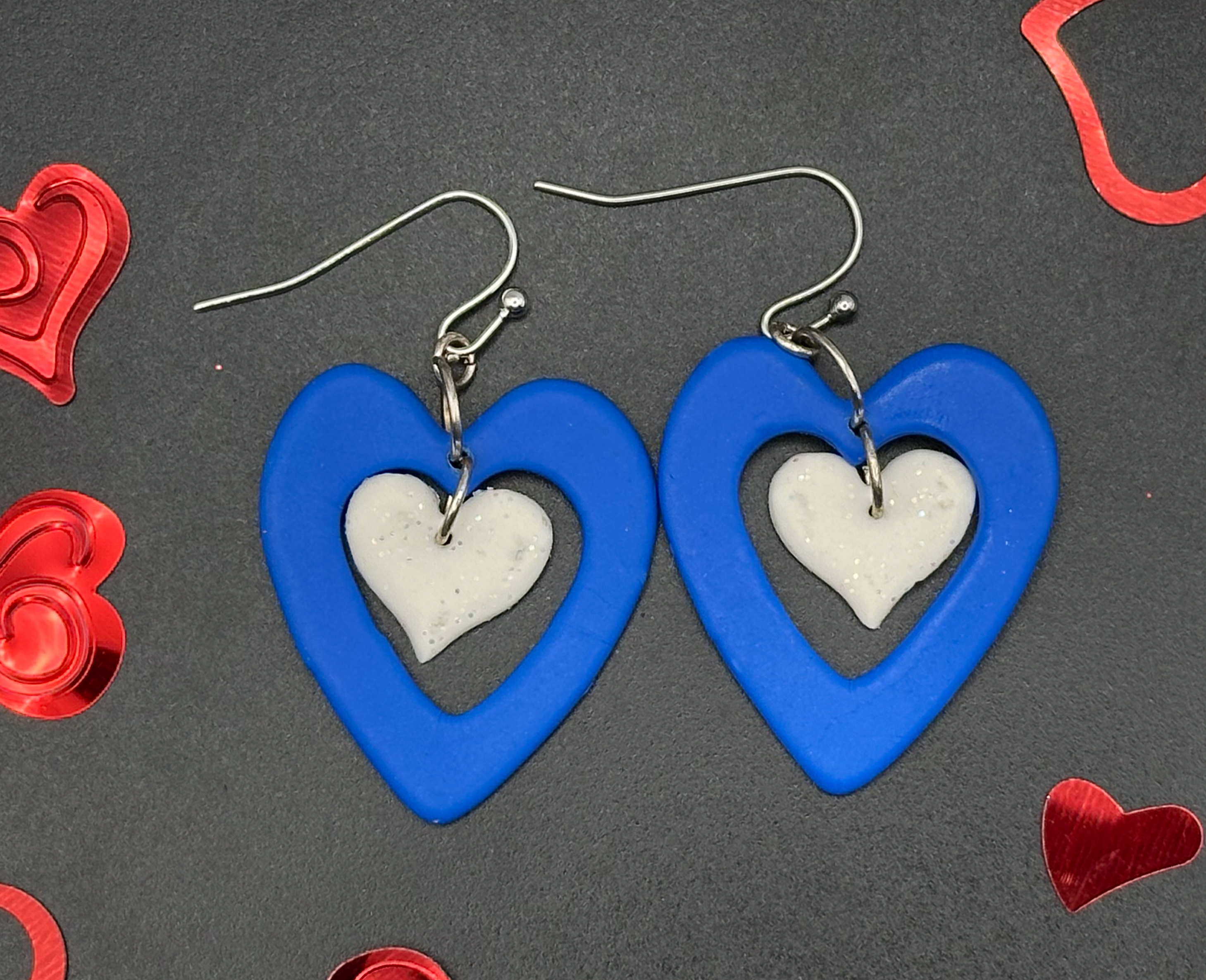 Bold blue meets soft white in these layered heart earrings! Handmade with love, they’re the perfect mix of vibrant and sweet for any occasion.