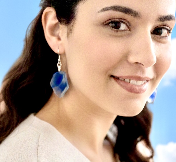 These earrings looks great with blue or white outfits any time, and especially in the summer. Each Bluejay cultured sea glass earring is unique in size, shape, and color pattern, so what you receive will look slightly different from the pictures.