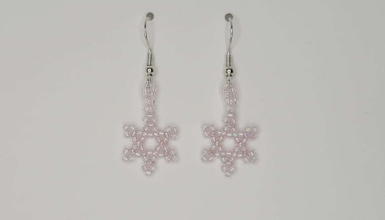 Blush Glimmer Snowflake Earrings feature pale blush beads with a soft iridescent finish.