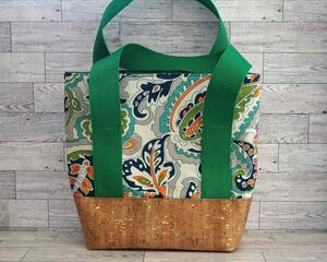 Materials: 100% Cotton fabric, natural cork fabric with gold flecks, cotton rope