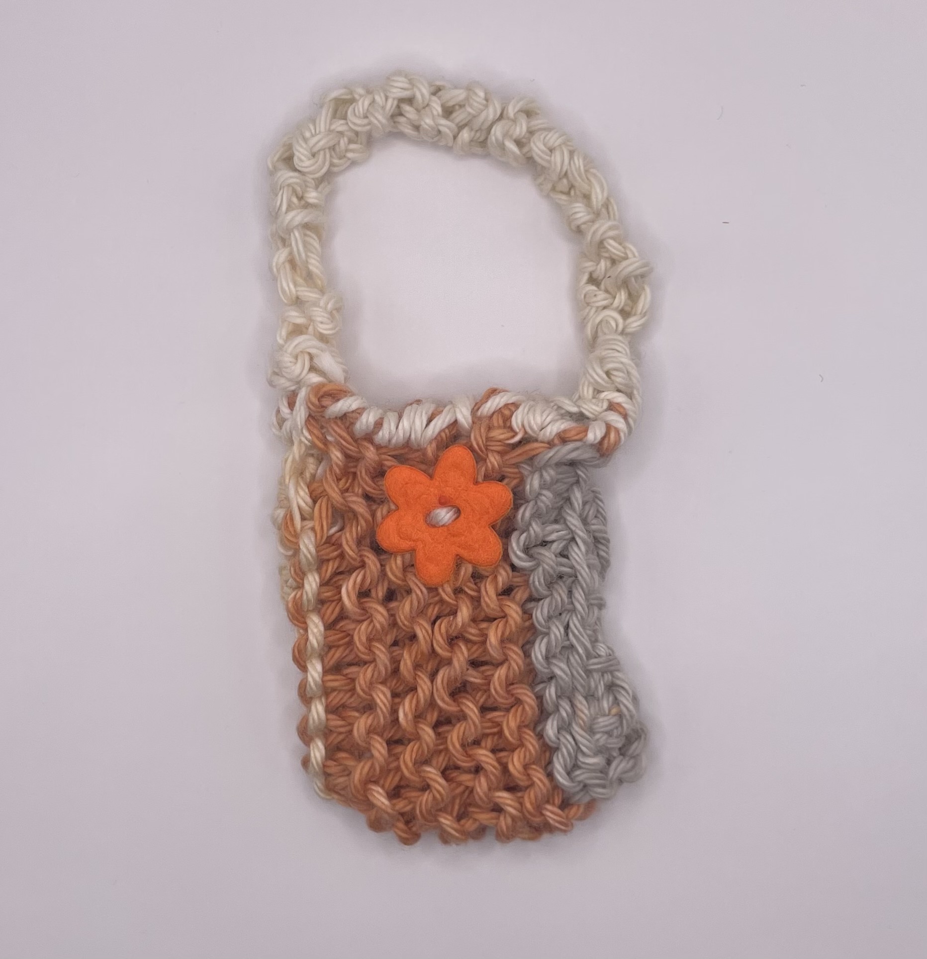 First, I always choose a yarn color that “speaks to me.” Next comes hand knitting the base of the bag followed by adding a strap - also hand knitted. The last step (my favorite) is adding the embellishment! Through the process I imagine the child receiving this doll accessory. That always puts a big smile on my face. Enjoy❣️
