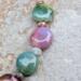 All metals are made in the USA, and I never use anything that contains nickel or lead. Many of my metal focals used in the more ornate, grand designs are made in the USA from vintage, victorian-era molds. Gemstones are all natural - not simulated or synthetic in any way. Glass beads are European made, and occasionally I will use genuine Swarovski crystal elements in my designs.