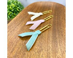 Set of 3 Velvet Ribbon Planner Clips - Mint green, Blush Pink...