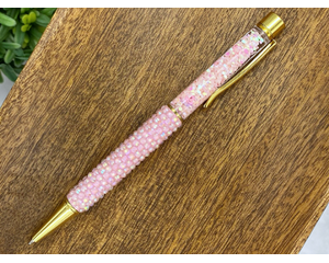 Glittery Pink Ballpoint Pen with Hand-Gemmed Rhinestones
