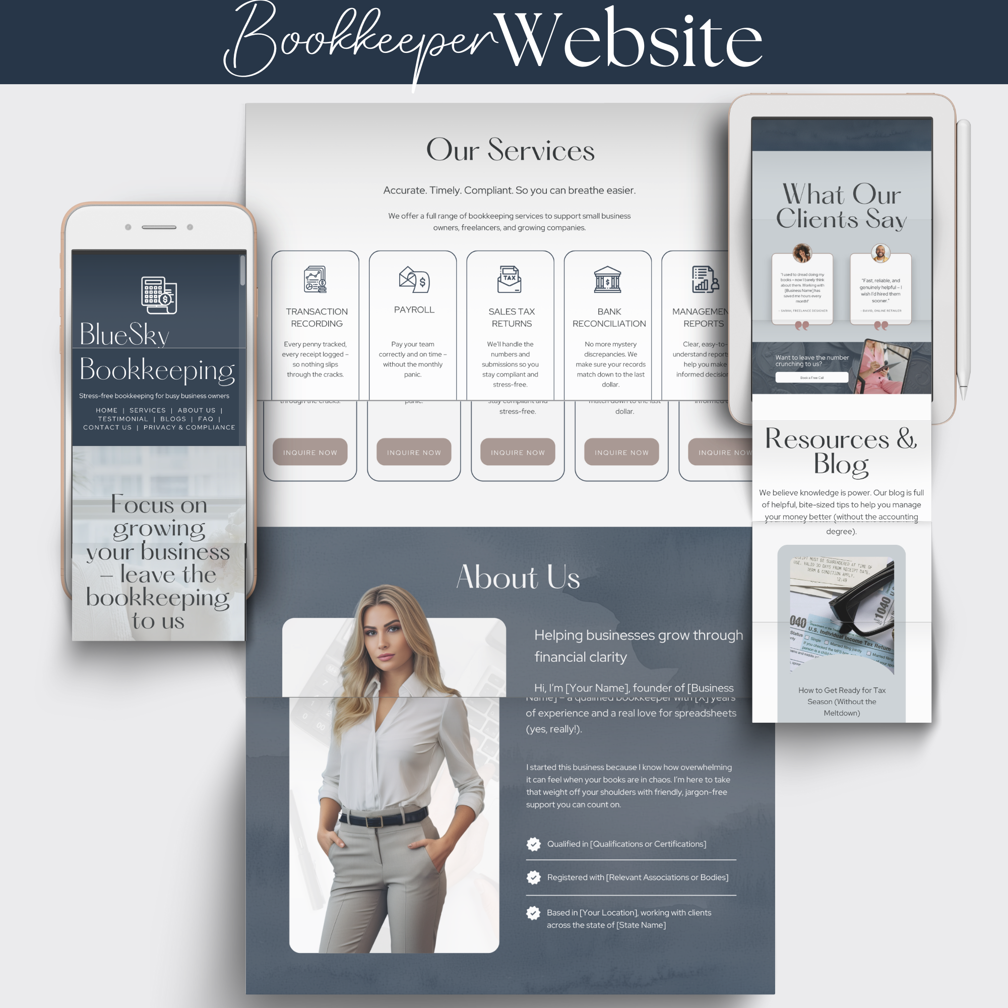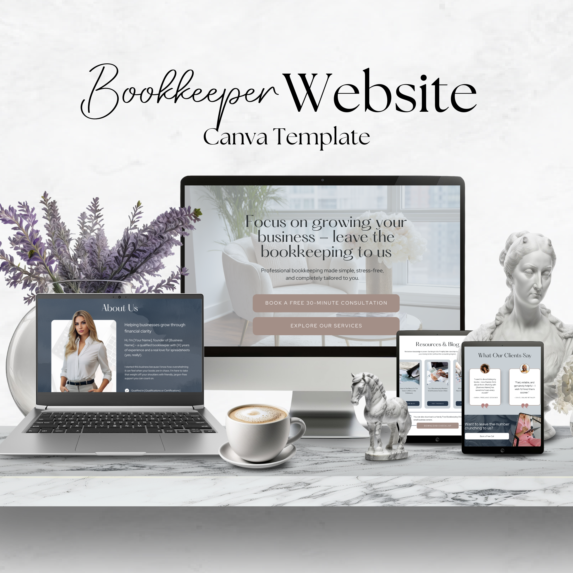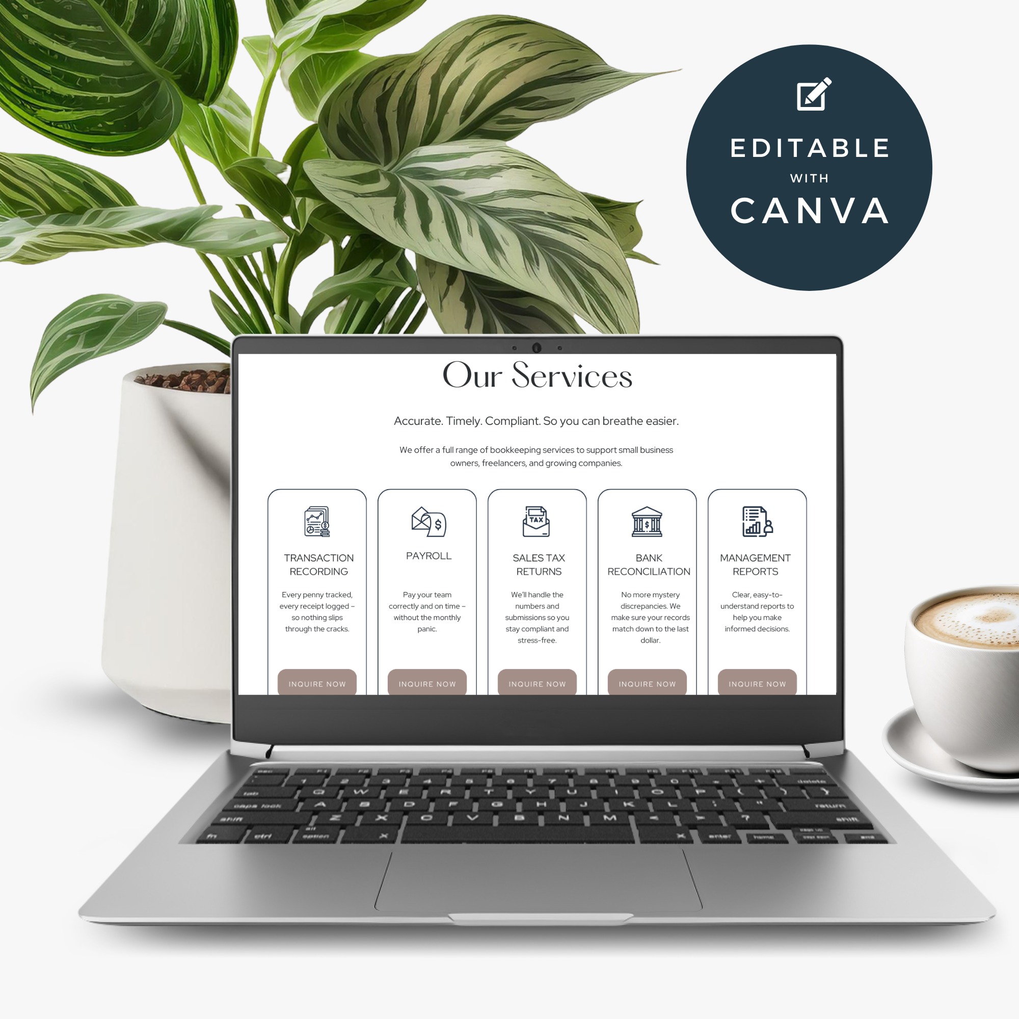 Ready to stand out online and attract more clients? This Bookkeeping Website Canva Template is designed just for bookkeepers, accountants, and tax preparers who want a professional, easy-to-edit website—without the tech headaches!