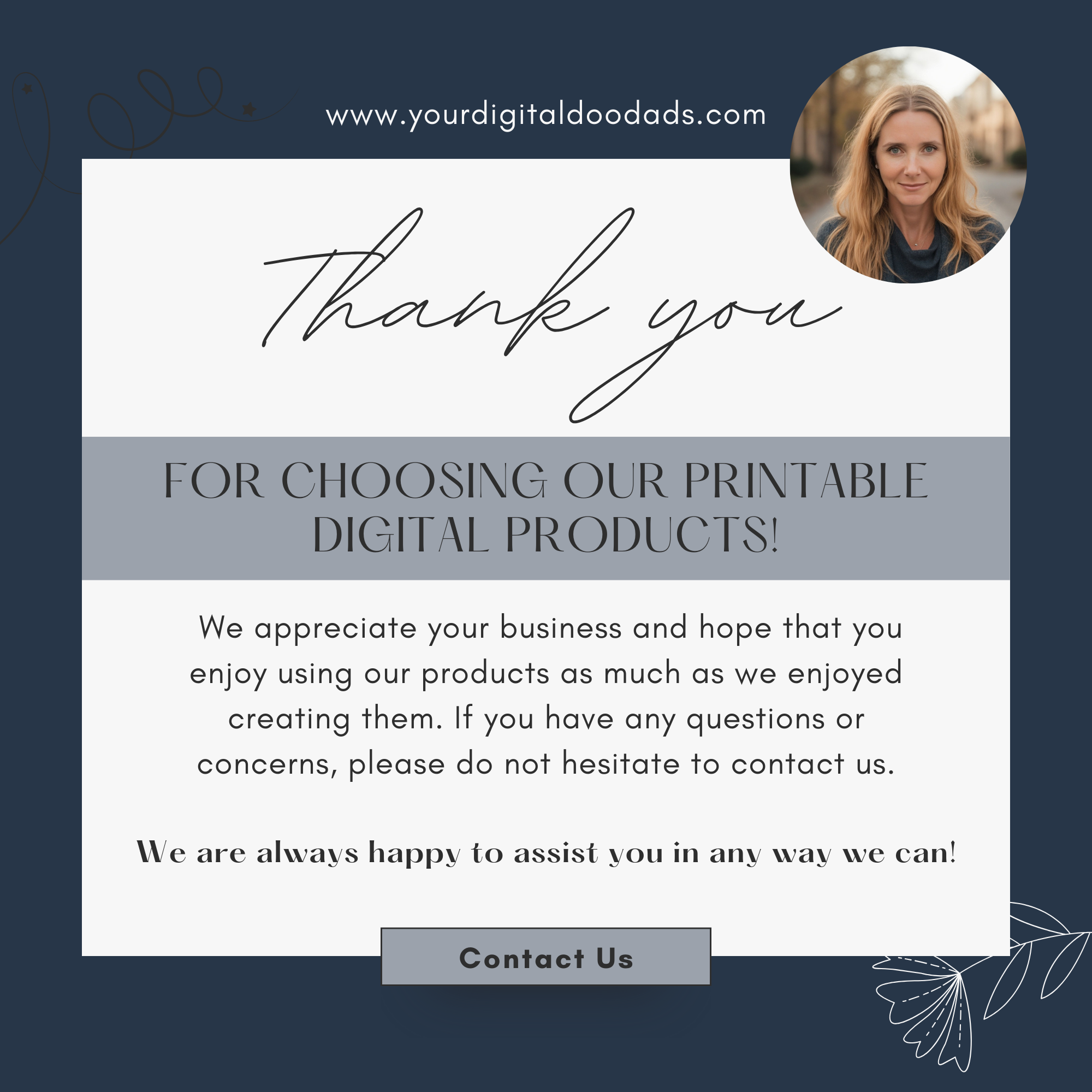 Navigating the realm of digital and printable products can undoubtedly feel overwhelming. That's why I'm not just a seller—I'm your partner in simplifying this process. If you're unsure about which product suits your requirements or if you have specific requests in mind, don't hesitate to reach out. I'm here to provide guidance and support every step of the way.