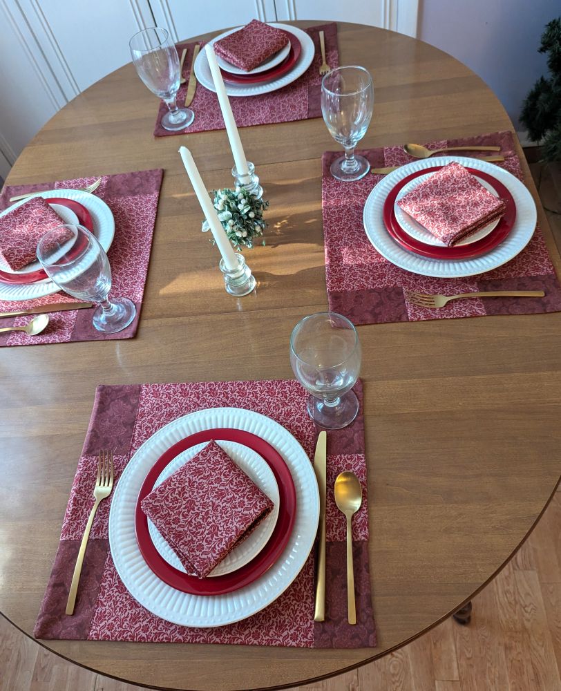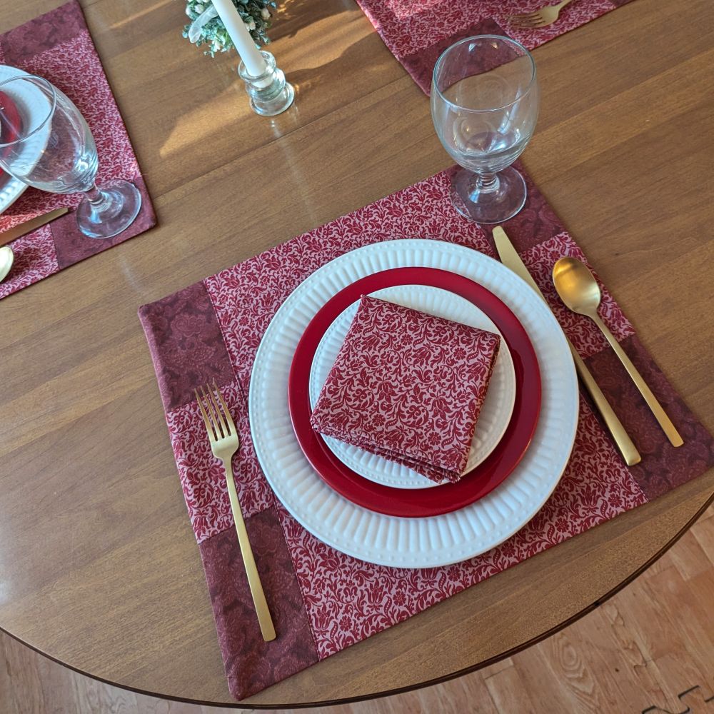 Are you ready to make your dining table the centerpiece of your home? Our Bordeaux Damask Placemat Napkins Set is here to help you do just that. This isn't just a set of placemats and napkins; it's a way to add warmth, style, and a touch of magic to every meal. The beautiful red color brings holiday cheer and a festive mood to any room, while the classic, timeless damask pattern gives your table a truly elegant look.