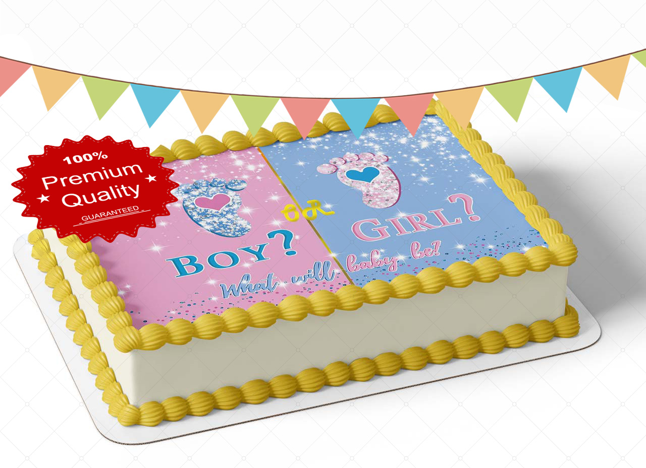 Boy or Girl Gender Reveal Idea Edible Image Themed Edible Birthday Party Cake Topper Sheet Edible Sticker Decal
