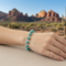 A secure silver-toned clasp ensures easy on and off, and that the bracelet stays in place once on. This piece is perfect for adding a pop of color to any outfit and can be worn alone as a statement piece or layered with other bracelets for a bohemian-chic look.