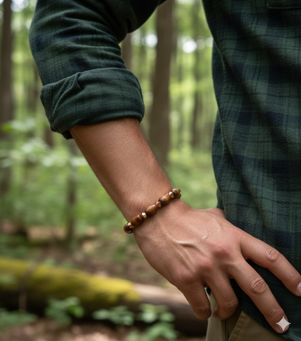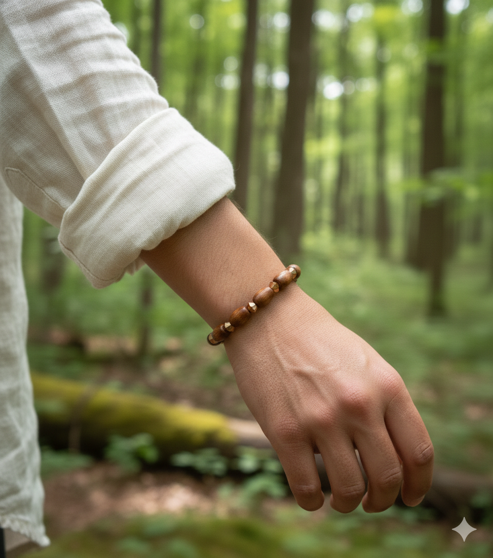 • Polished Wood Barrels: Smooth, elongated wooden beads with a deep, rich brown finish, emphasizing a natural, earthy feel.