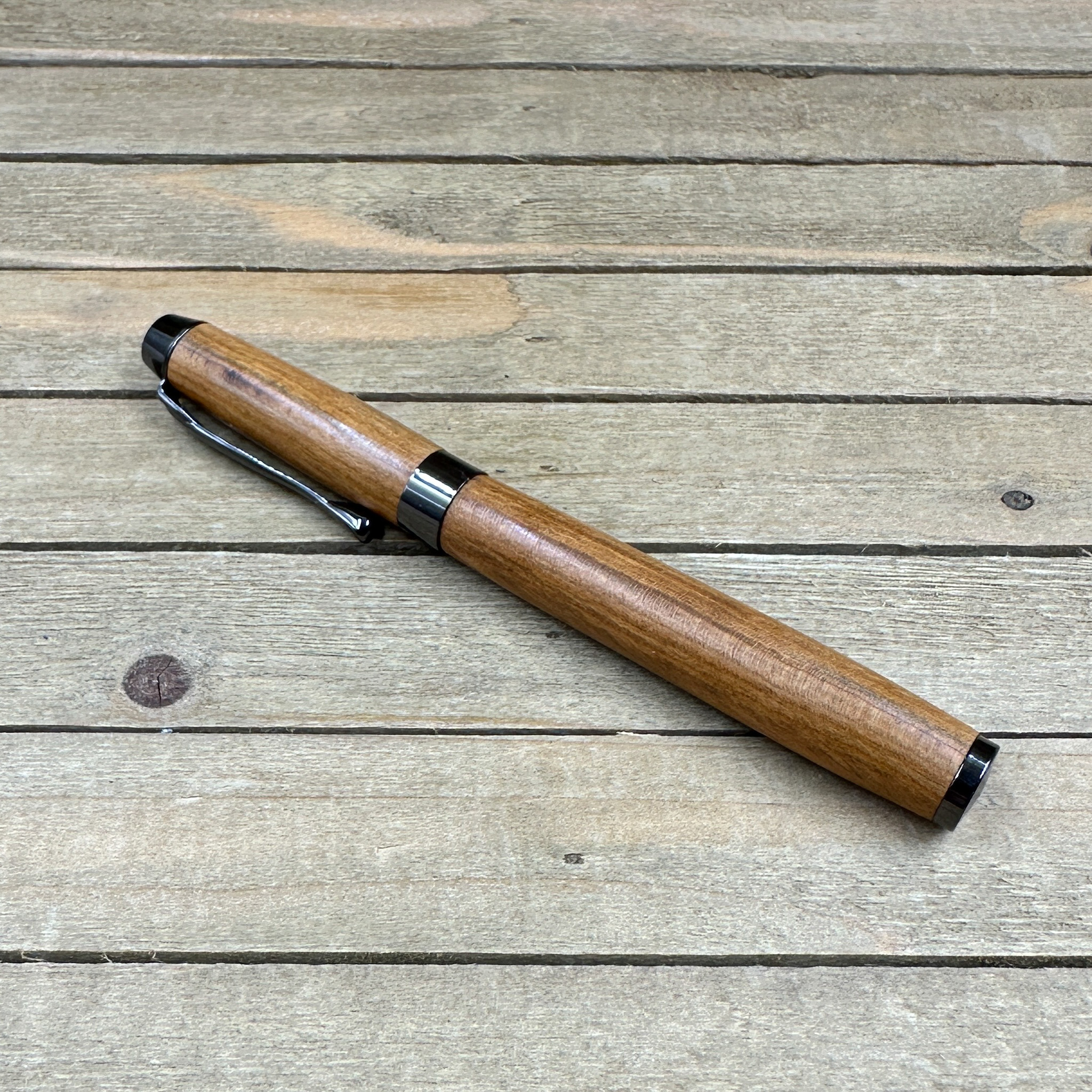 Discover the joy of writing by hand with a fountain pen. This introductory fountain pen is handcrafted from Bradford Pear wood, a beautiful hardwood known for its soft grain and warm, golden-brown tones. Finished with care and fitted with a smooth medium-fine steel nib, this pen is designed to offer a satisfying writing experience for beginners and enthusiasts alike.
