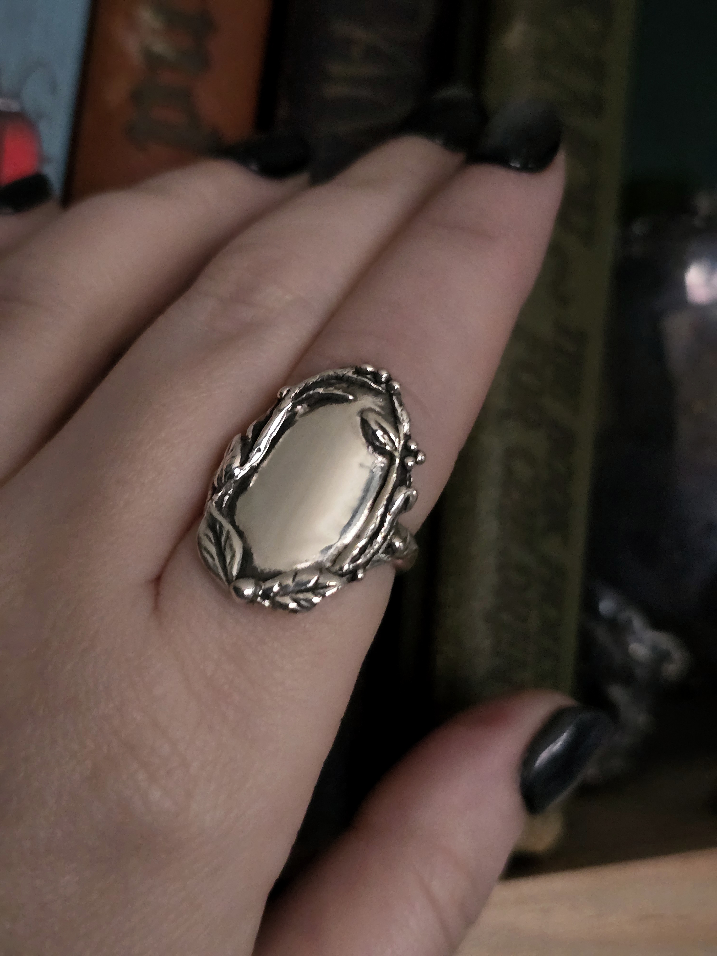 Branches and leaves mirror ring size 6.5