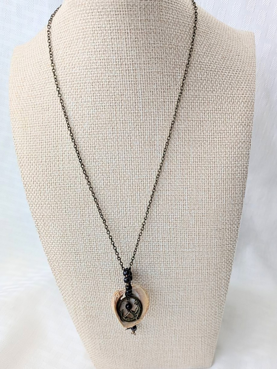 Oregon Beach Girl: Here I create beach themed necklaces and earrings. I make necklaces from seashells that I collect during my beach walks and adorn them with charms, semi-precious stones, freshwater pearls and Swarovski Crystal. I also wire wrap agates and rocks that I find on my local beaches. My inspiration comes from my meditative time walking along the shore. Every shell and every rock has a story to tell. My job as a designer is to be a good steward of that story and bring out the very best of each piece.