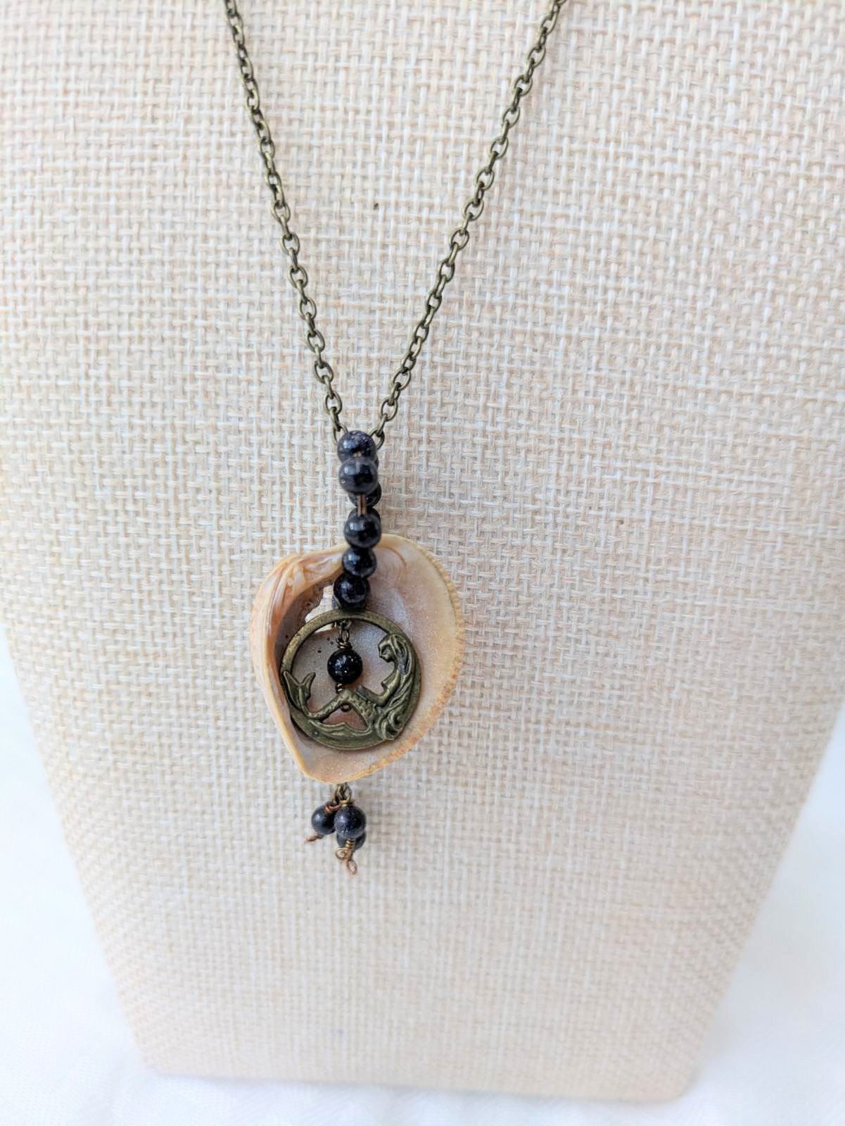 Brass Mermaid necklace with Blue Goldstone from Oregon Beach Girl!