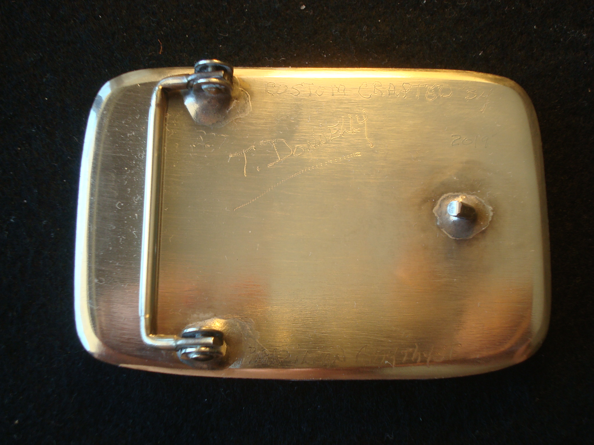 I have been making my buckles for approximately 45 years. I cut shape and polish all my pieces and fabricate my belt buckle backings using German silver or as it's also called nickle silver. German silver is not silver but an alloy comprised of nickle,brass, and zinc and I use it because it is stronger,less expensive and it doesn't tarnish as does silver. All my buckles take around 20 different steps to complete and the one's with silver insets take many more steps.