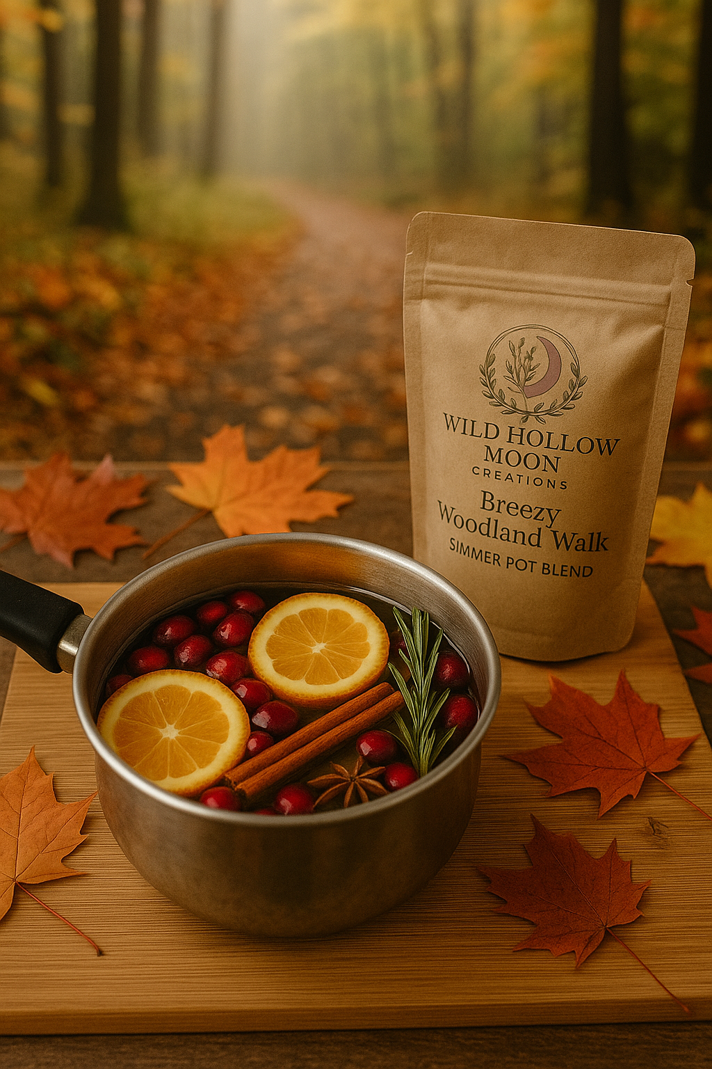 Breezy Woodland Walk Simmer Pot is handcrafted in small batches using dried botanicals, fruits, and herbs inspired by the fresh, grounding scent of a walk through the woods.