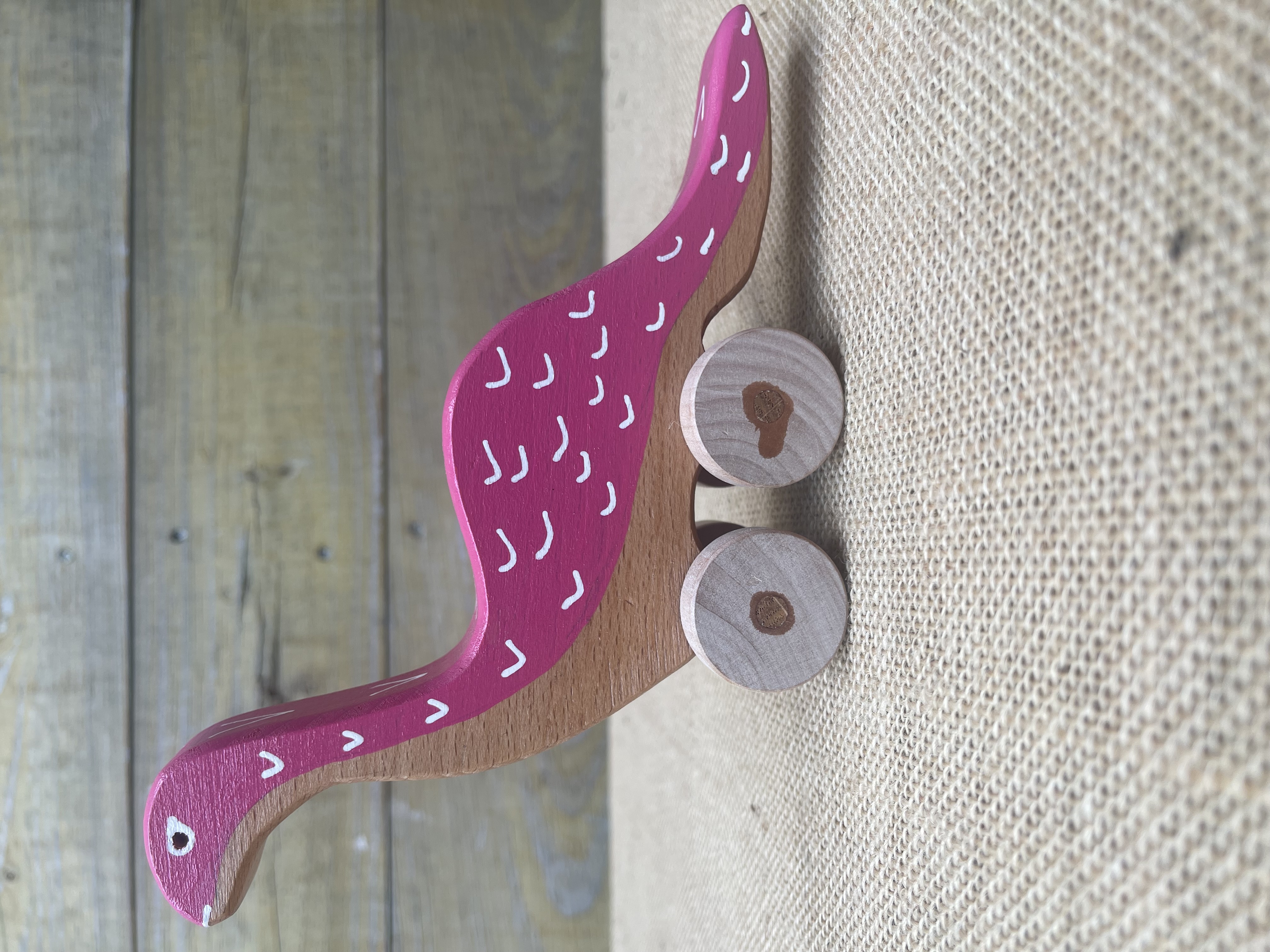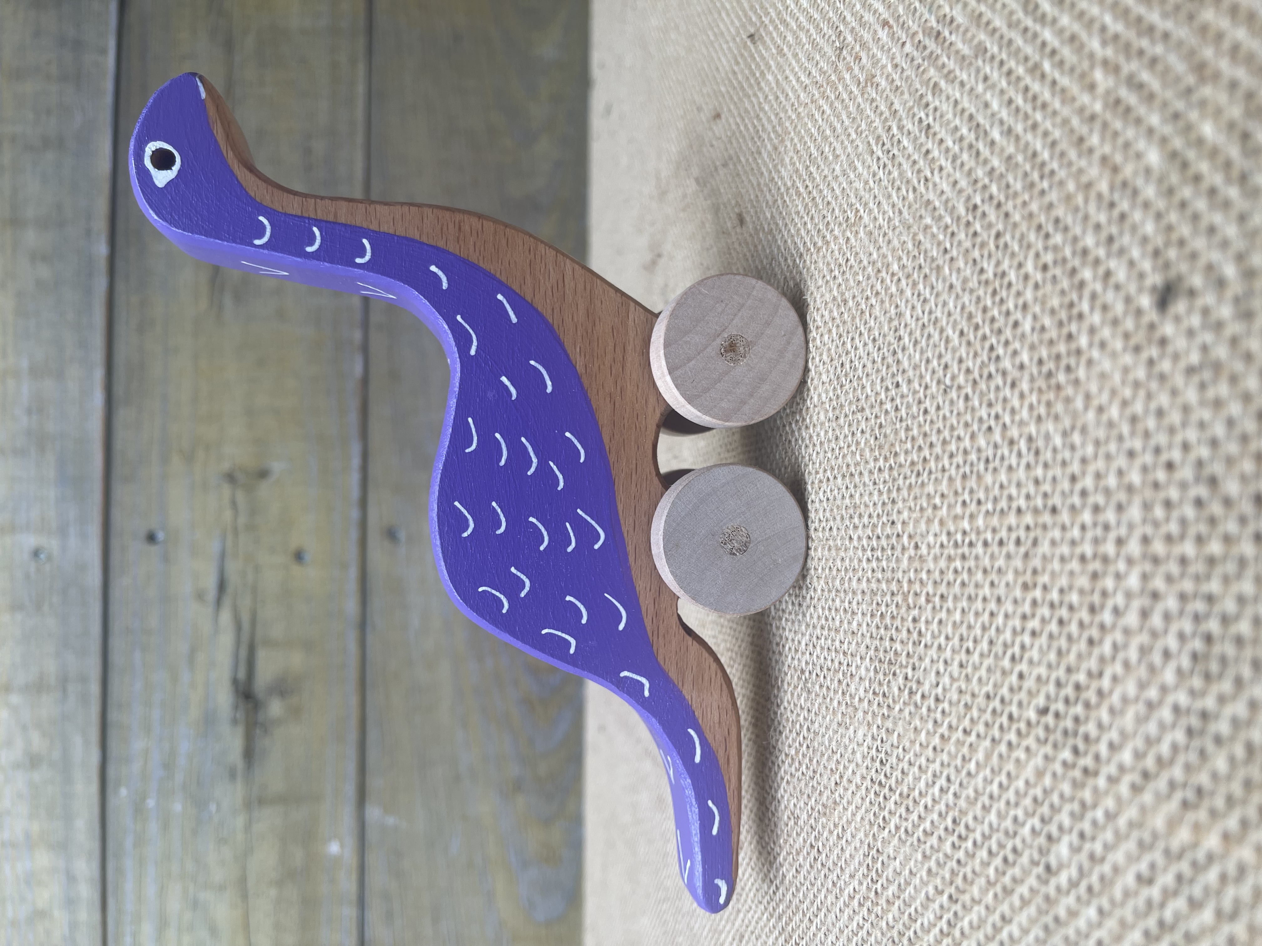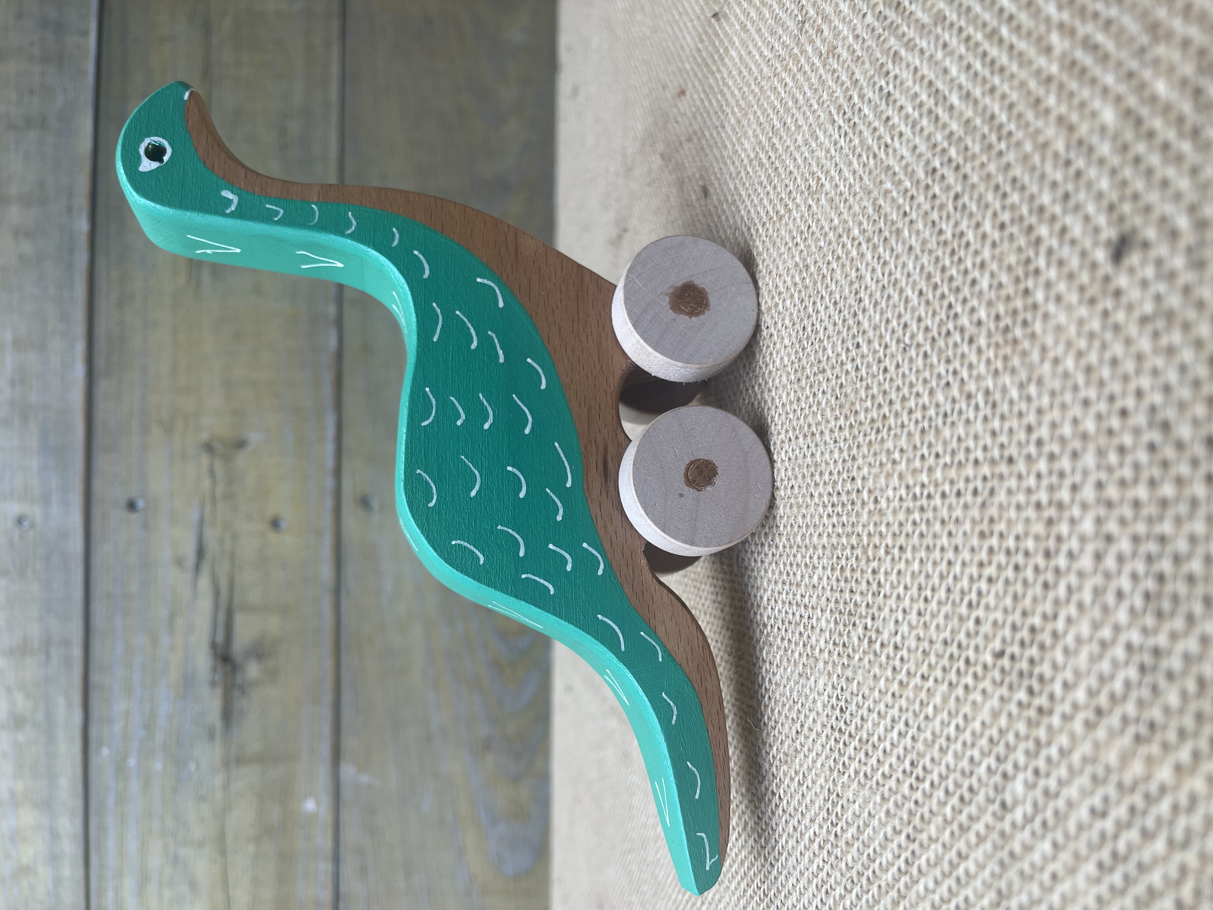Handcrafted wooden brontosaurus