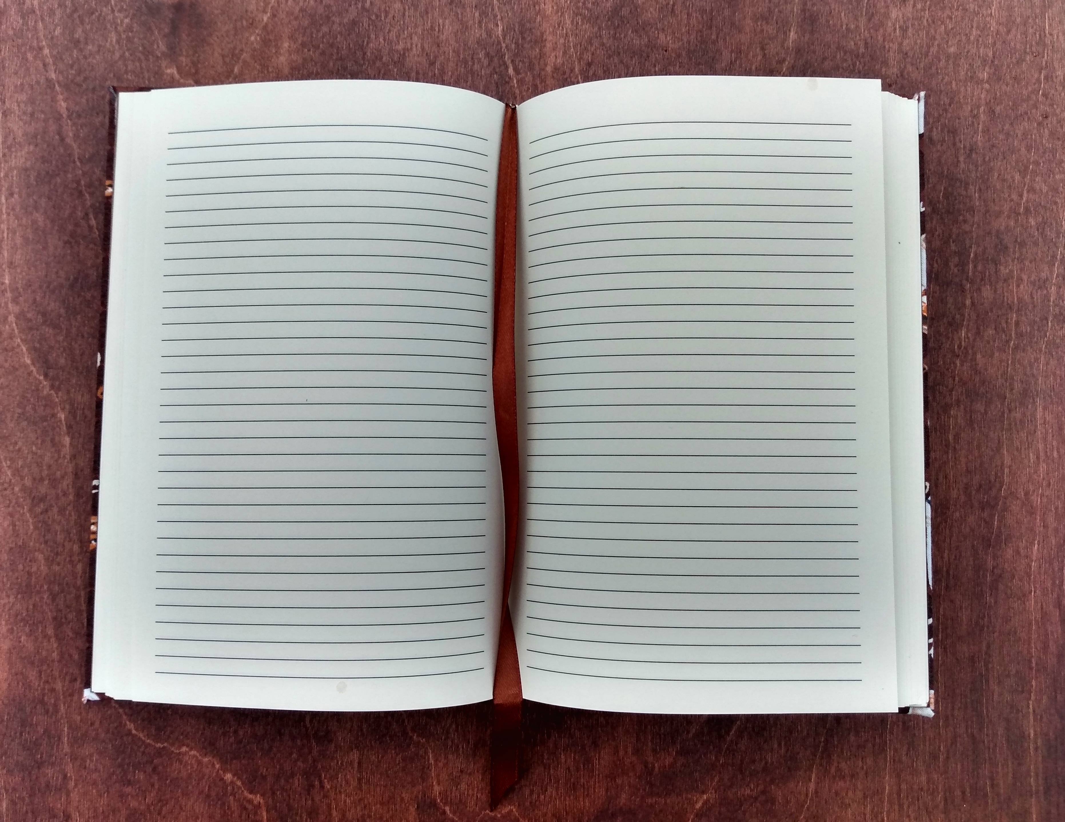 This 8.5"x5.5" book has 200 pages of 20lbs lined paper, with a ribbon marker to help you find your next blank page.