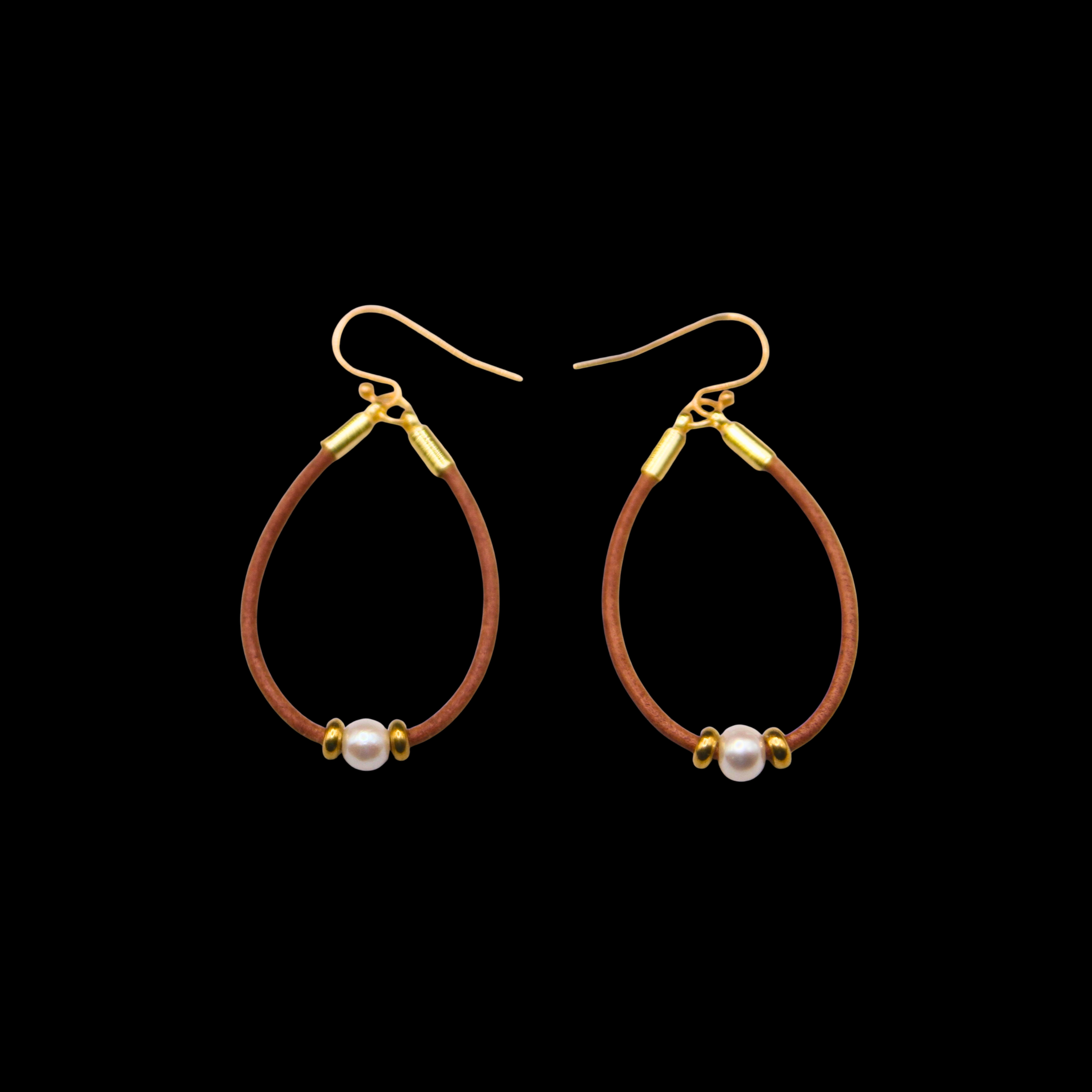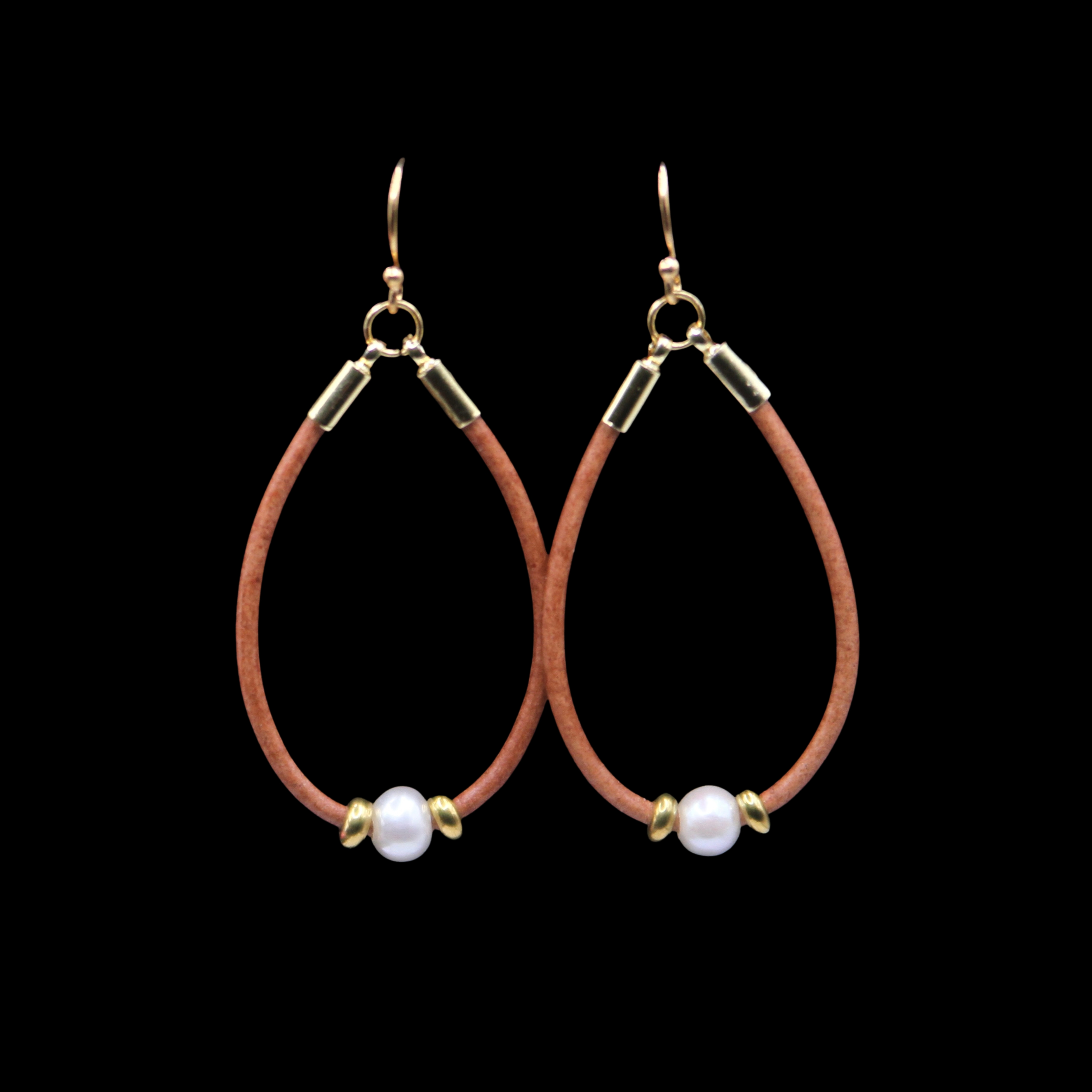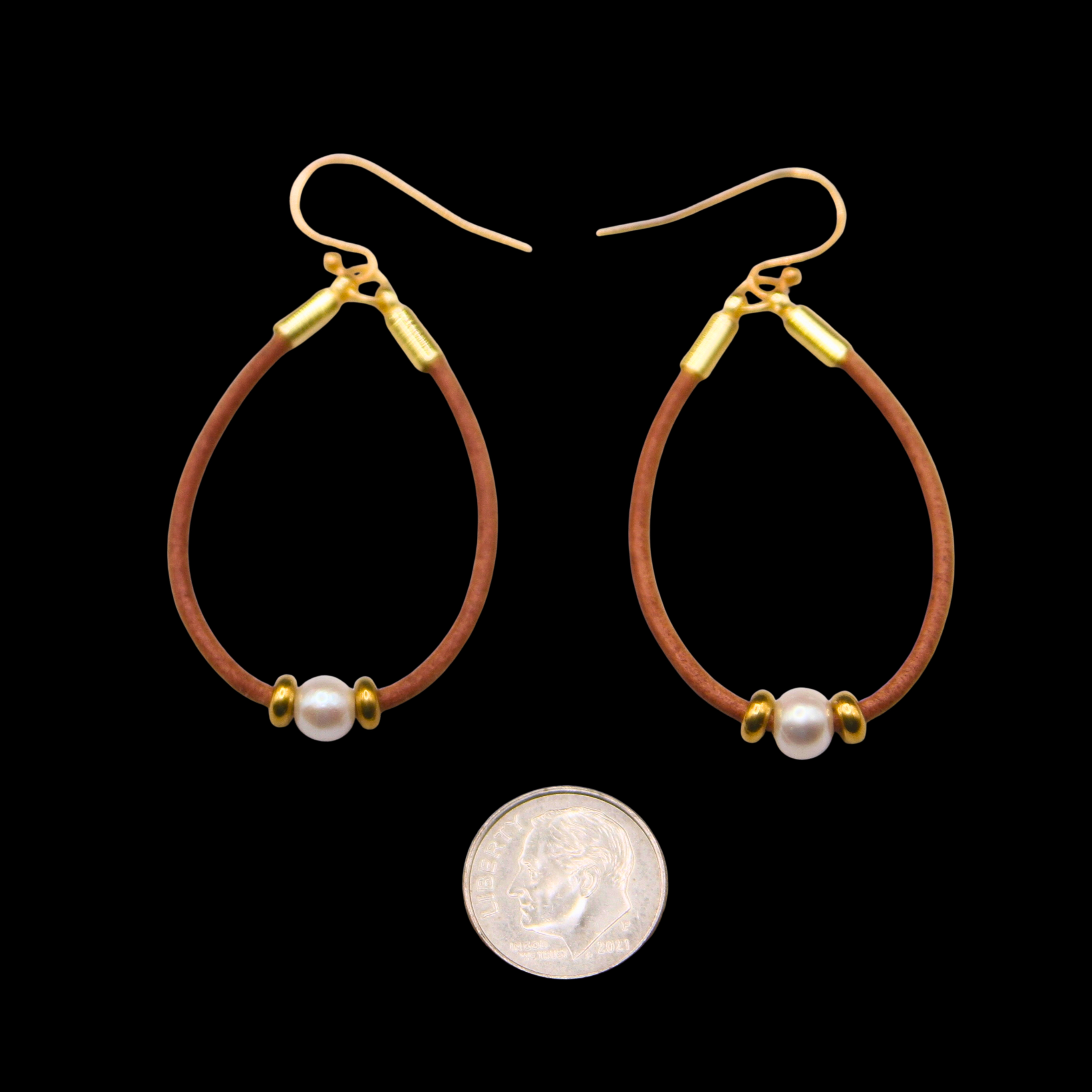 Each pair of these earrings are made to order! I start with genuine soft brown leather cord cut to equal lengths. I assemble the pearls, wheel spacers, connectors and cord ends. I finish them with a pair of gold plated solid 925 sterling silver ear wires!