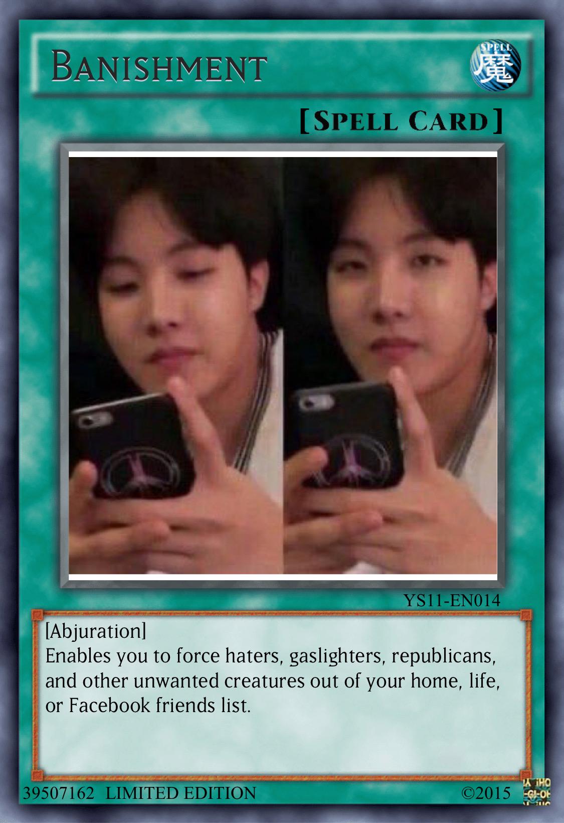 Unleash the magical powers of BTS with this unique Yu-Gi-Oh!-style trading card! Combining the energetic vibe of your favorite K-Pop idols with a dose of spiritual humor, this card is the perfect collectible for BTS fans who want to bring some positive energy into their lives (or deliver a well-deserved smackdown into someone else’s). Whether displayed on your altar, added to your card collection, or given as a fun gift, it's sure to make you smile and feel the magic!