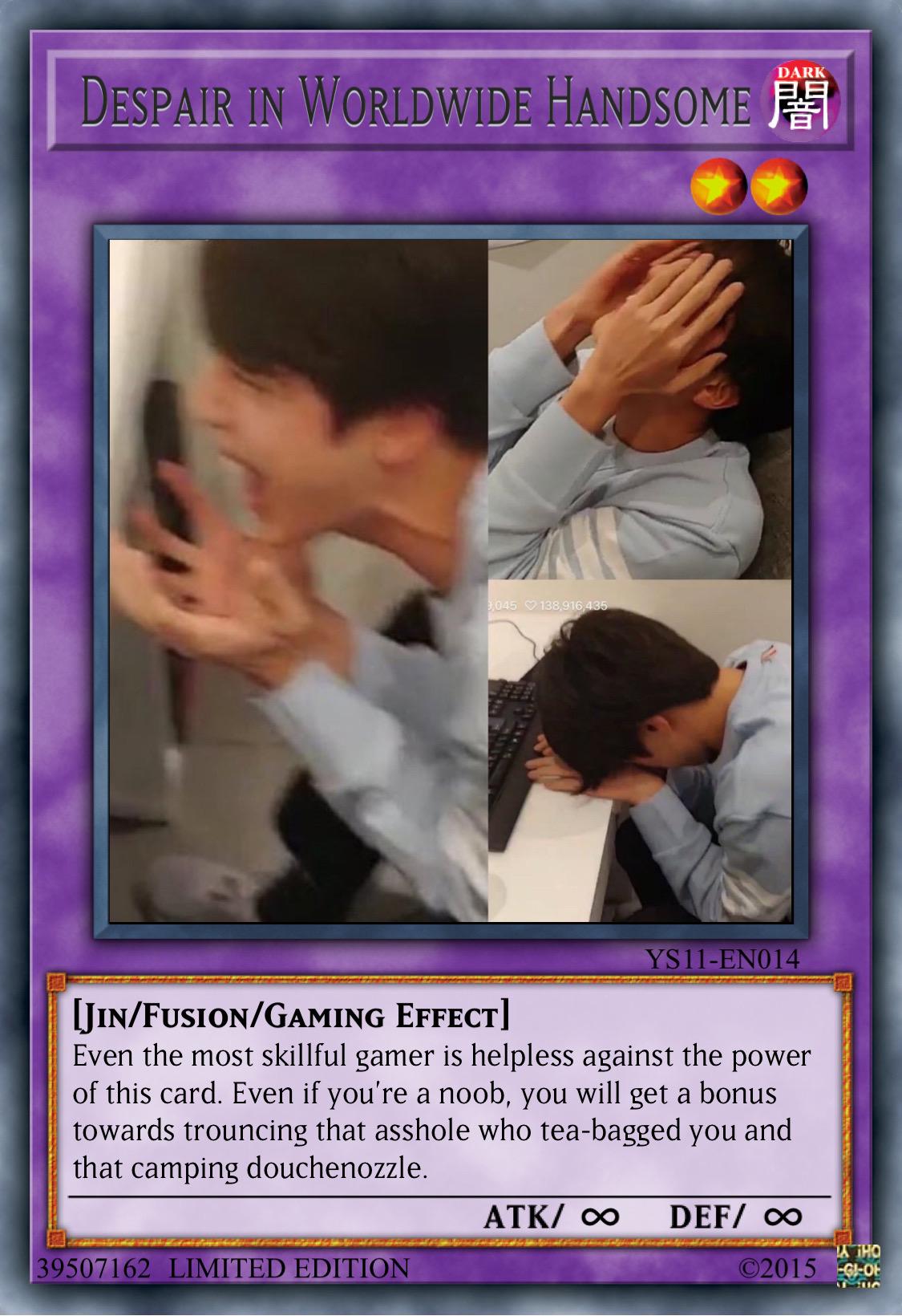 Unleash the magical powers of BTS with this unique Yu-Gi-Oh!-style trading card! Combining the energetic vibe of your favorite K-Pop idols with a dose of spiritual humor, this card is the perfect collectible for BTS fans who want to bring some positive energy into their lives (or deliver a well-deserved smackdown into someone else’s). Whether displayed on your altar, added to your card collection, or given as a fun gift, it's sure to make you smile and feel the magic!