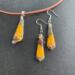 I found these cabs at a farmers market and felt nothing but joy and excitement! I knew right away I want a set with tiny bees! It was a process finding how I wanted to make the bees. The first design was a line drawing style which was cute but didn’t seem quite right. Even my partner tried his hand at wire wrap to help inspire a fitting bee, it gave me wasp vibes but he was definitely closer than myself lol. Then we landed here and I couldn’t be happier and would be thrilled to make another set!